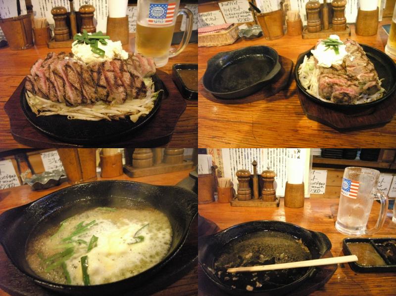 ステーキのドンでは、レア焼きのステーキと焼けた石が鉄板の上に乗っていて、自分で石の上でお好みに焼いて食べるスタイルなんですよ。結構おいしい。