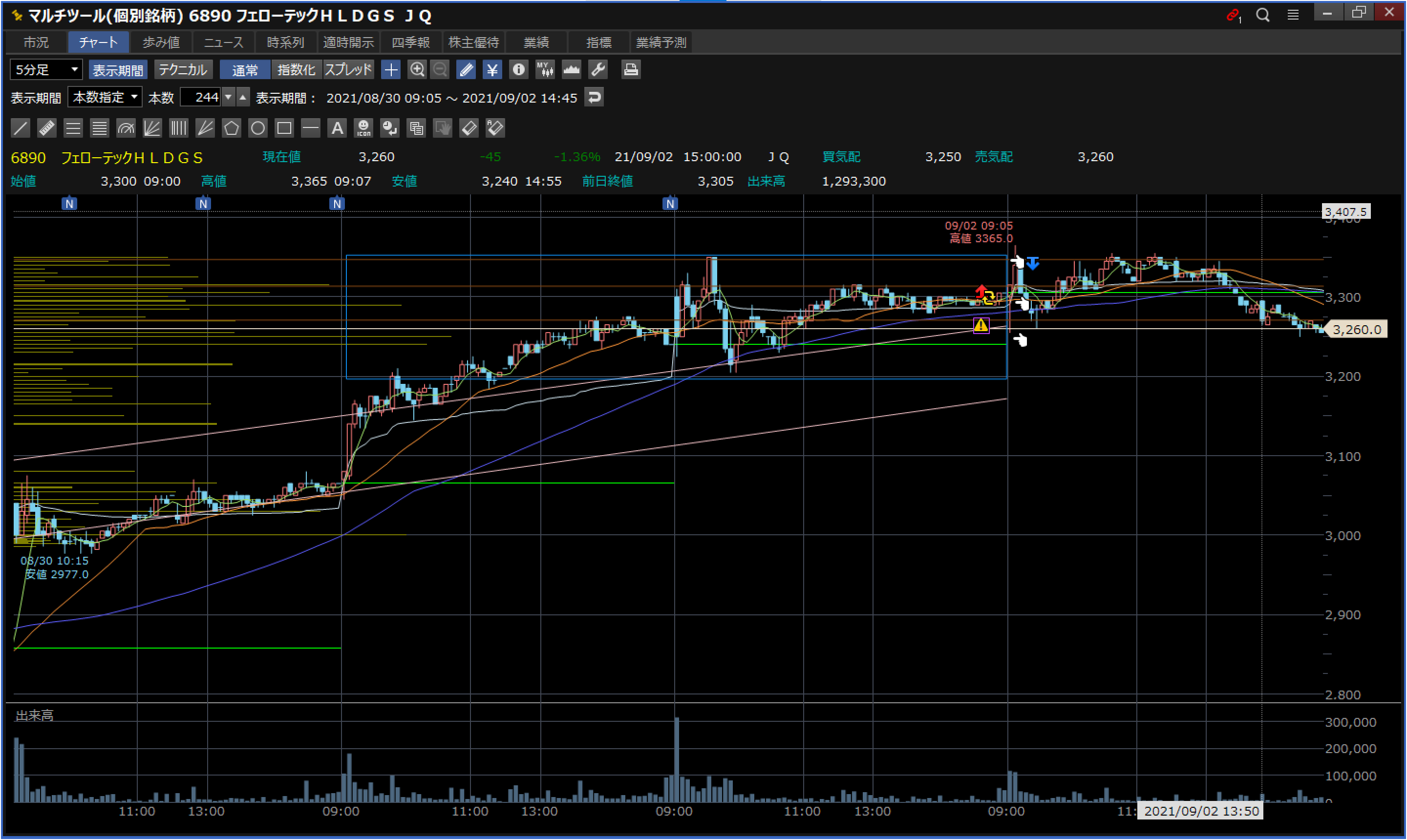 買残大過ぎだが短時間なら〇、髭トレ銘柄、上値BOX LINEが強い