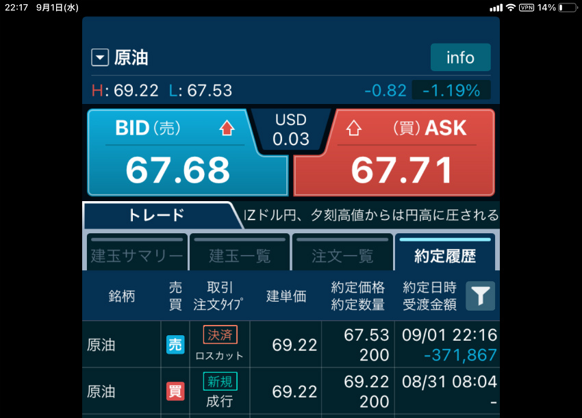 前日は売れば上がる、買えば下がるの最悪のタイミングでの売買で、何回もトレードしていなければ最少失点で済んだという話だった。