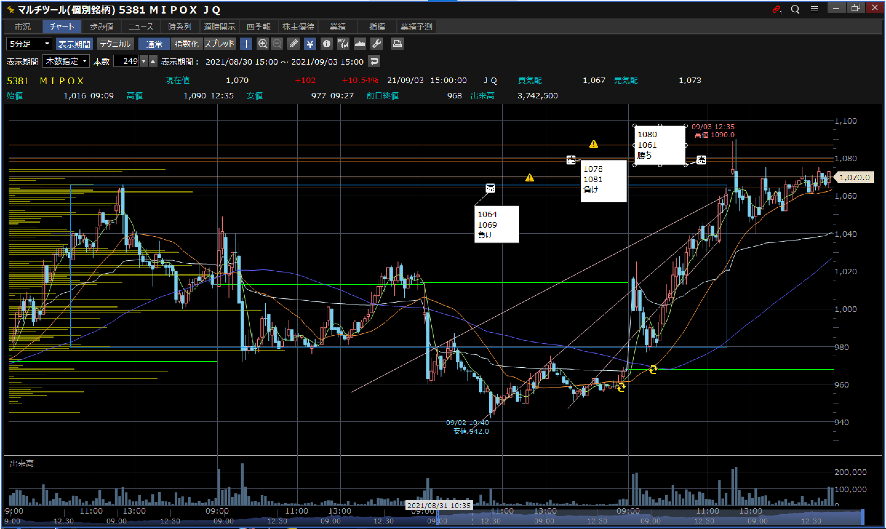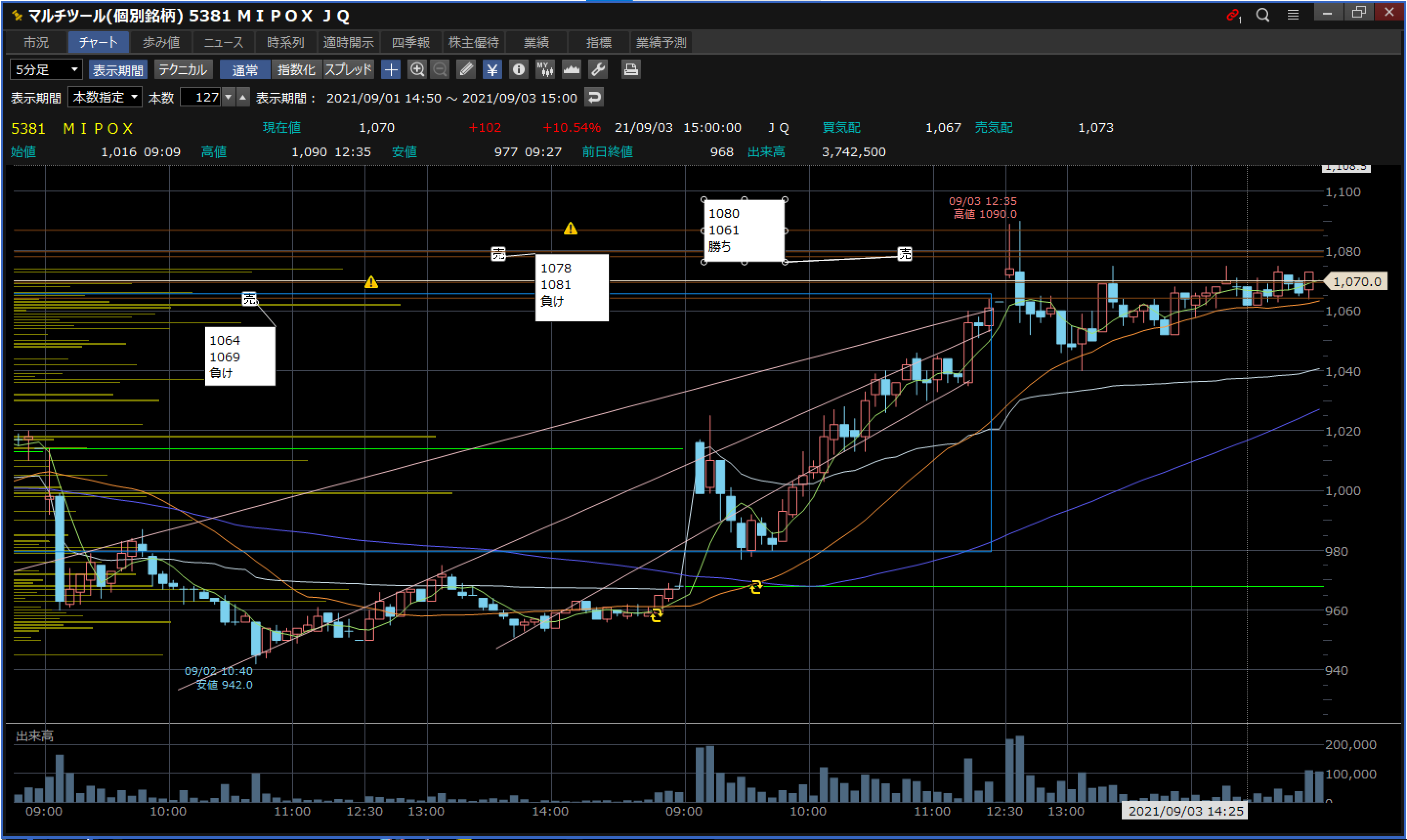 反省:BOX天井上髭狙いは〇、髭の長さを、後場の状況変化も意識