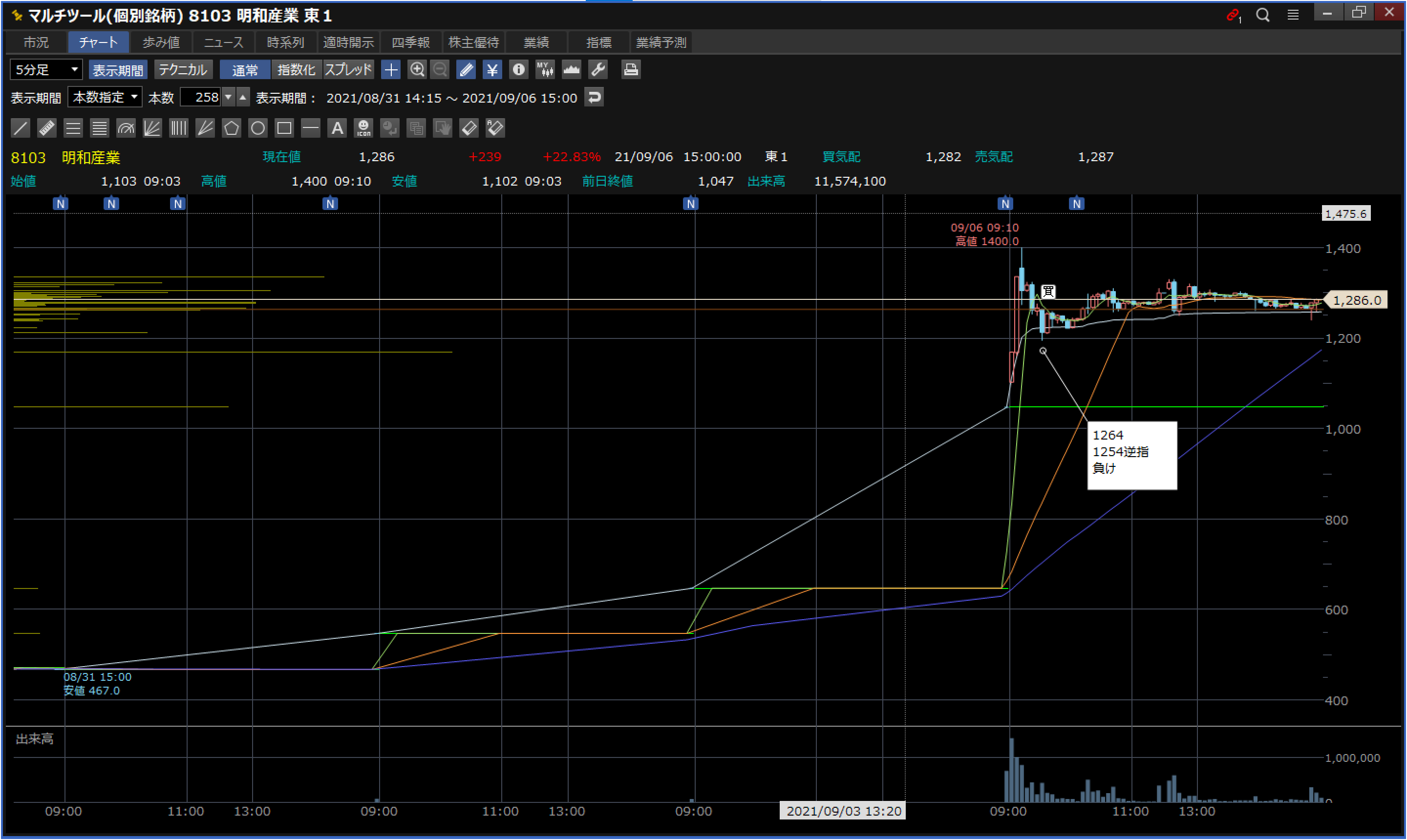 当日:解放直後のVWAP上下髭乗り
