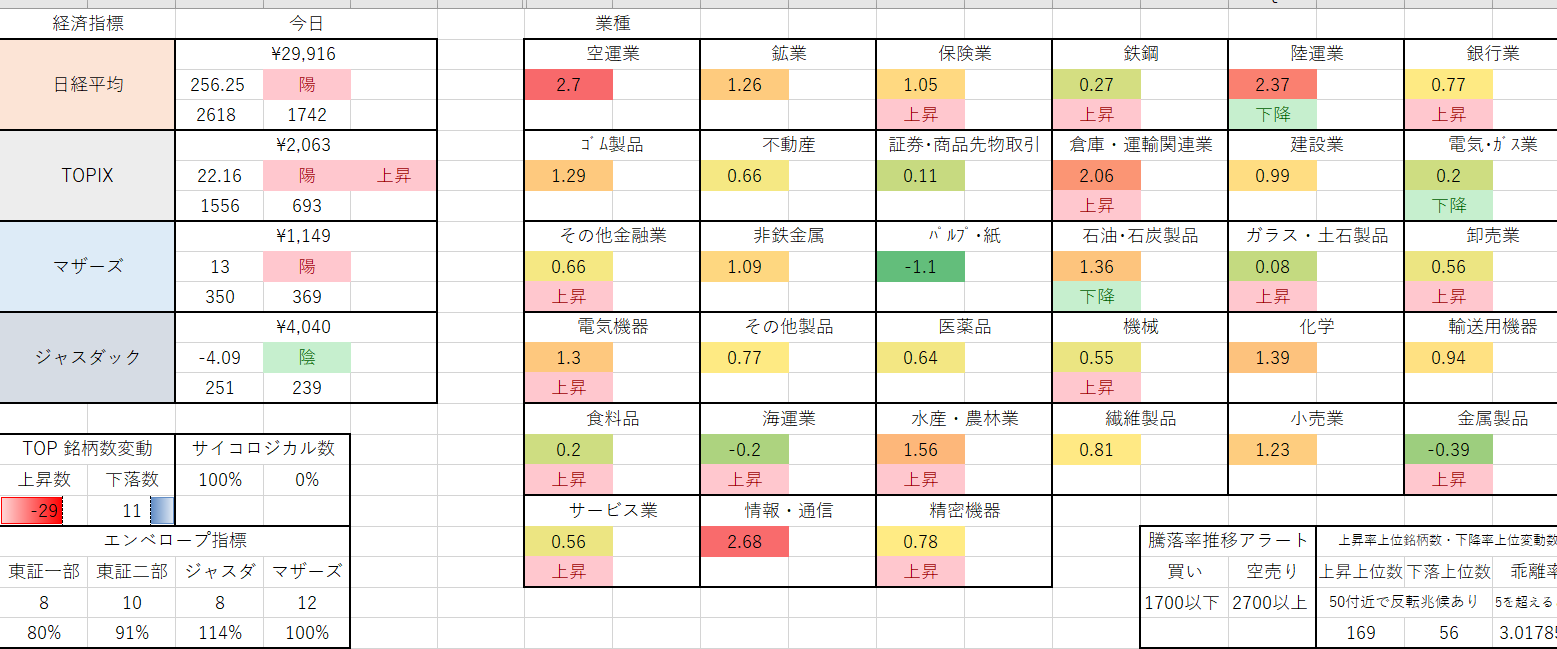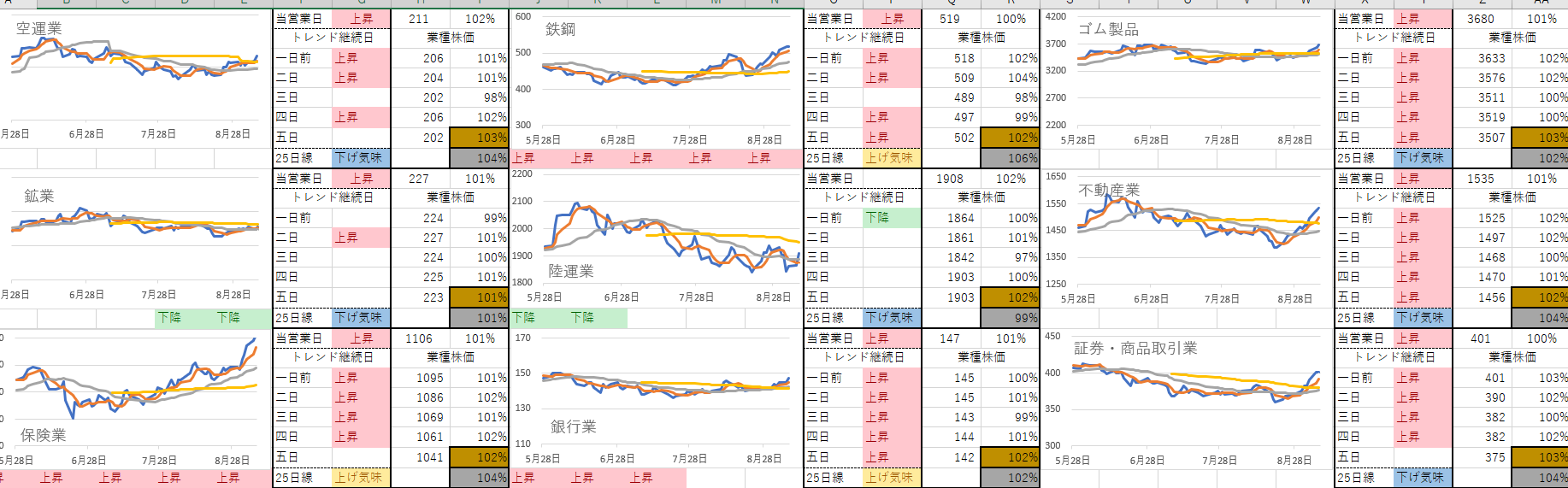 33業種中15業種で上昇トレンドです。