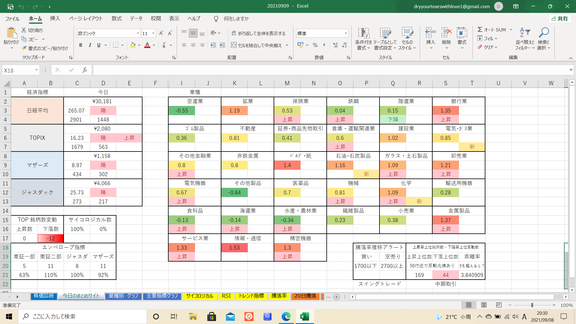 上昇トレンド16業種 に対し 下降トレンド1業種です。
