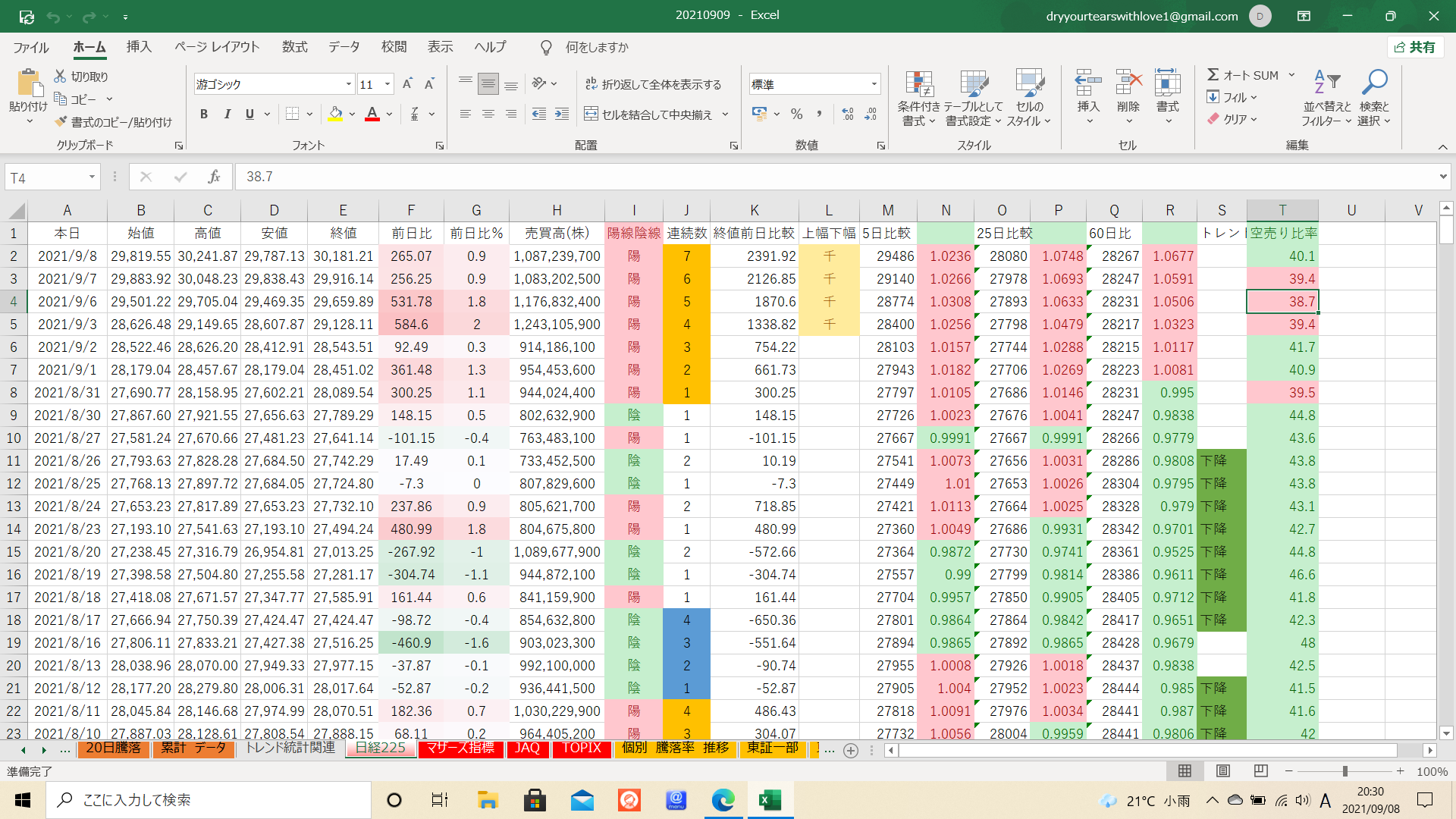 すさまじい勢いです。自分は4日前から空売り比率を高めているのですが、我慢の限界が近々来てしまいそうです。
