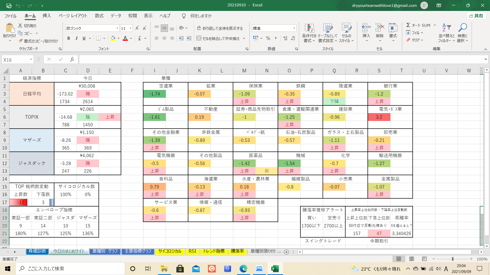 上昇トレンドは、17業種となりました。ほとんどが上昇トレンド業種となっております。