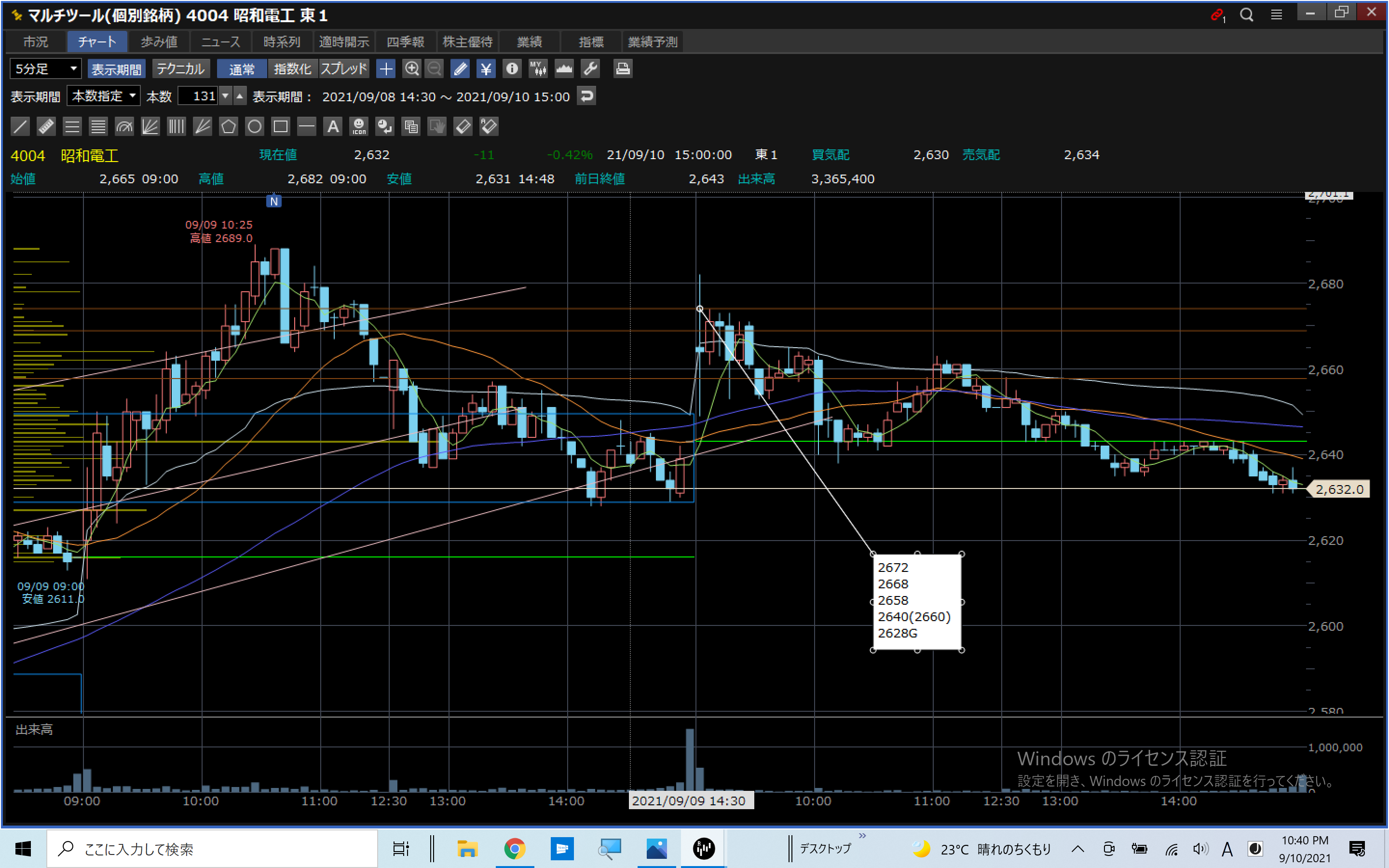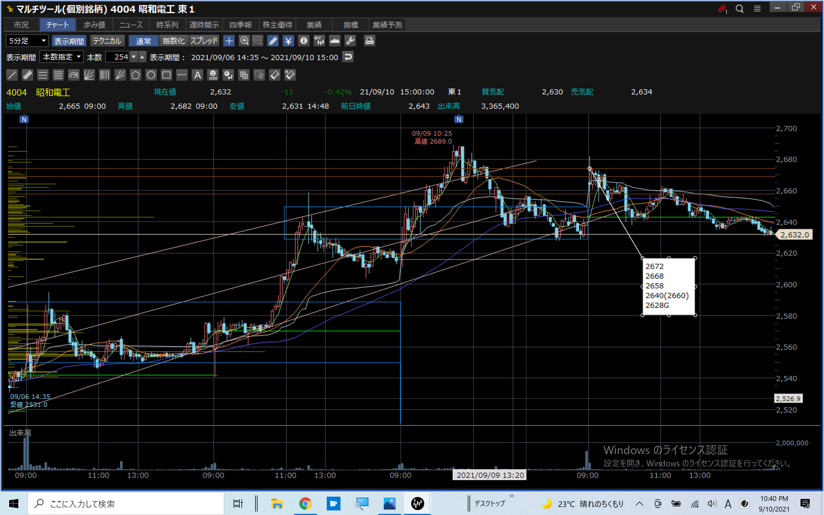 OUT:1628G>引け利確:2632(-32)