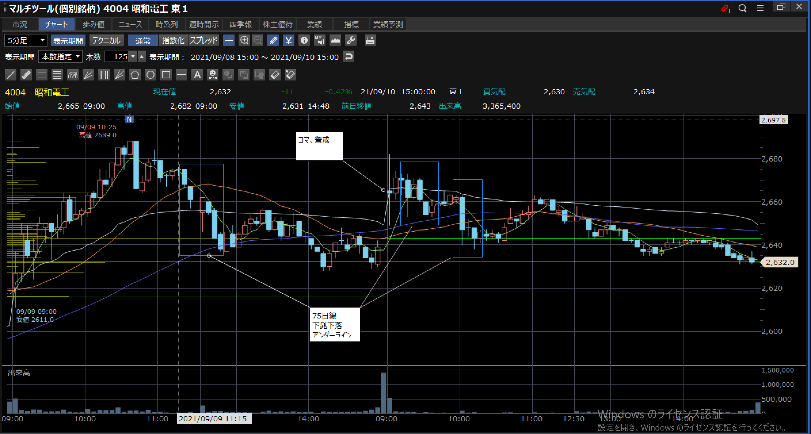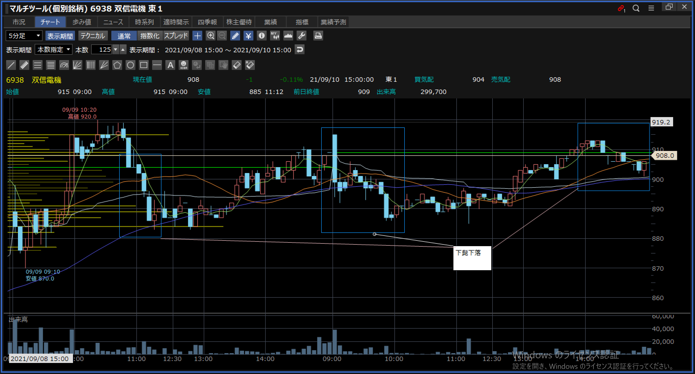 下髭を出しながら下落、このサインが出たら上昇力が弱まったサイン