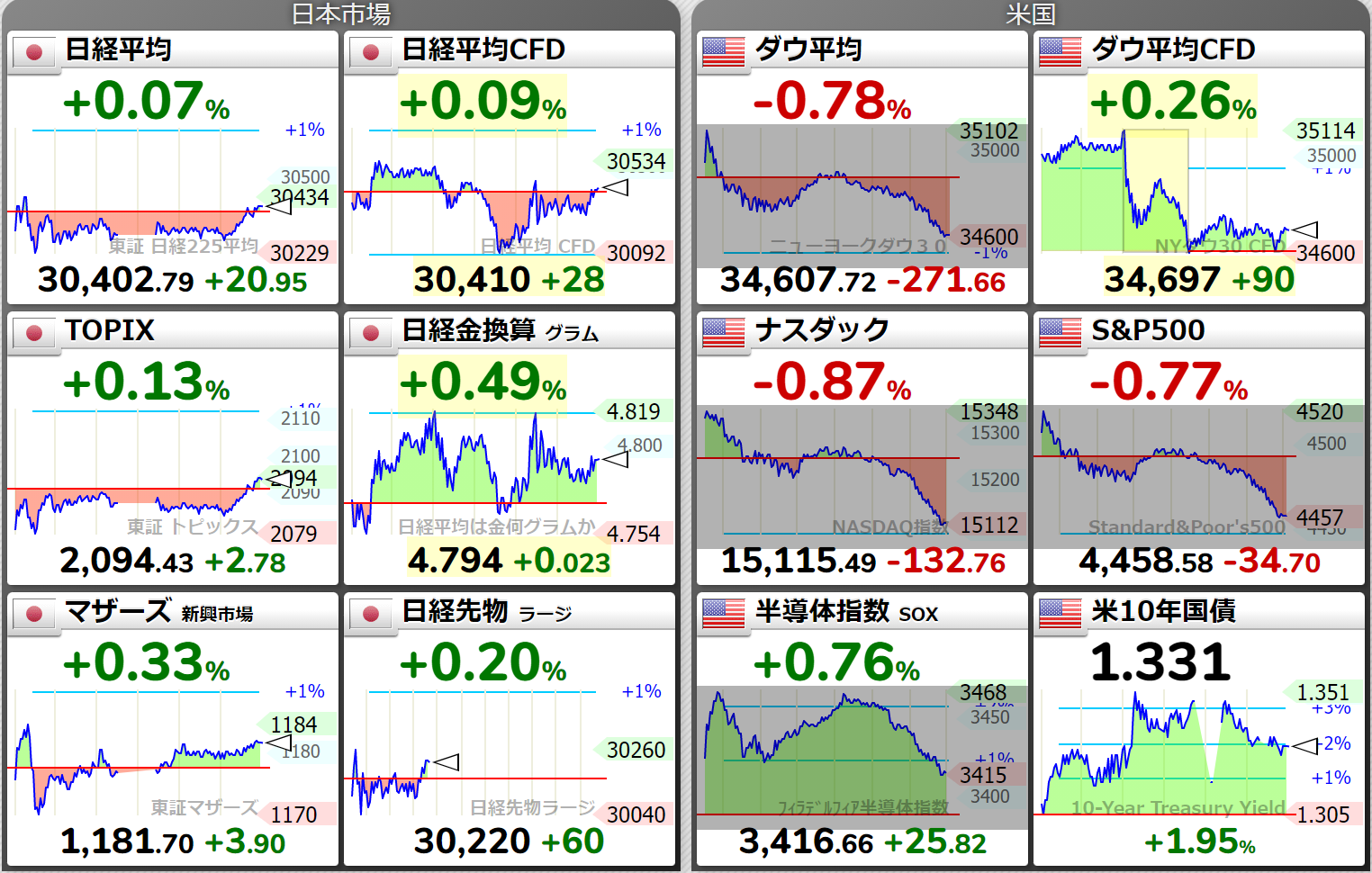 NYダウ 34607.72 -271.66 ( 9月10日) 米国10年国債利回り 1.340 %