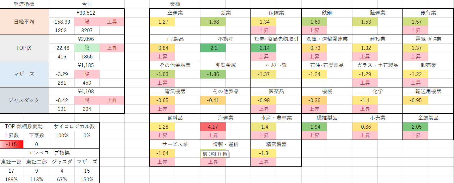 33業種中9業種以外はすべて上昇トレンドとなります。。。