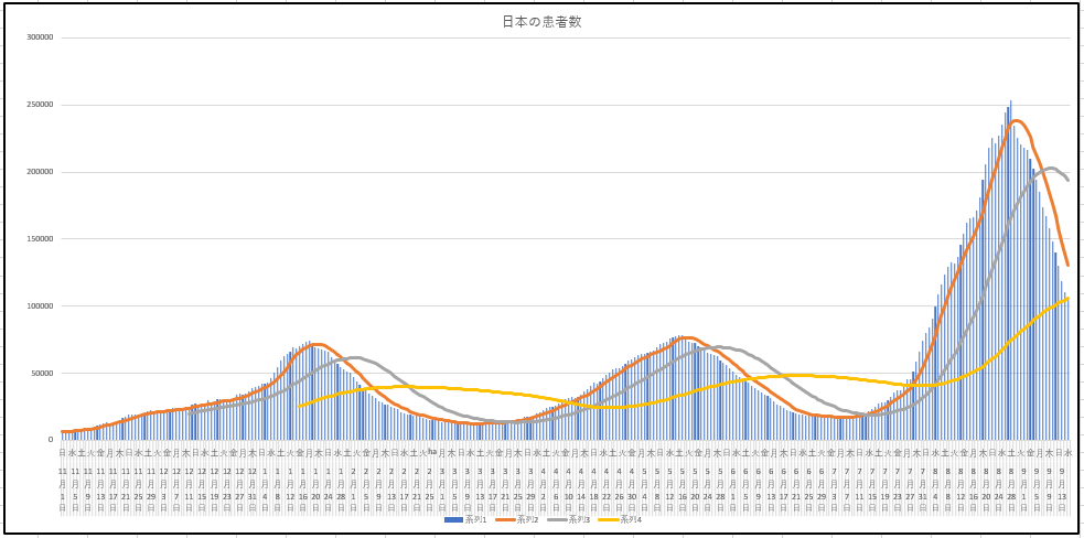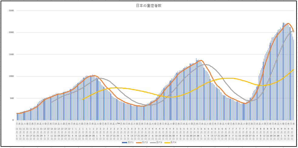 重症者数はまだまだ多くて、ようやく7日移動平均が