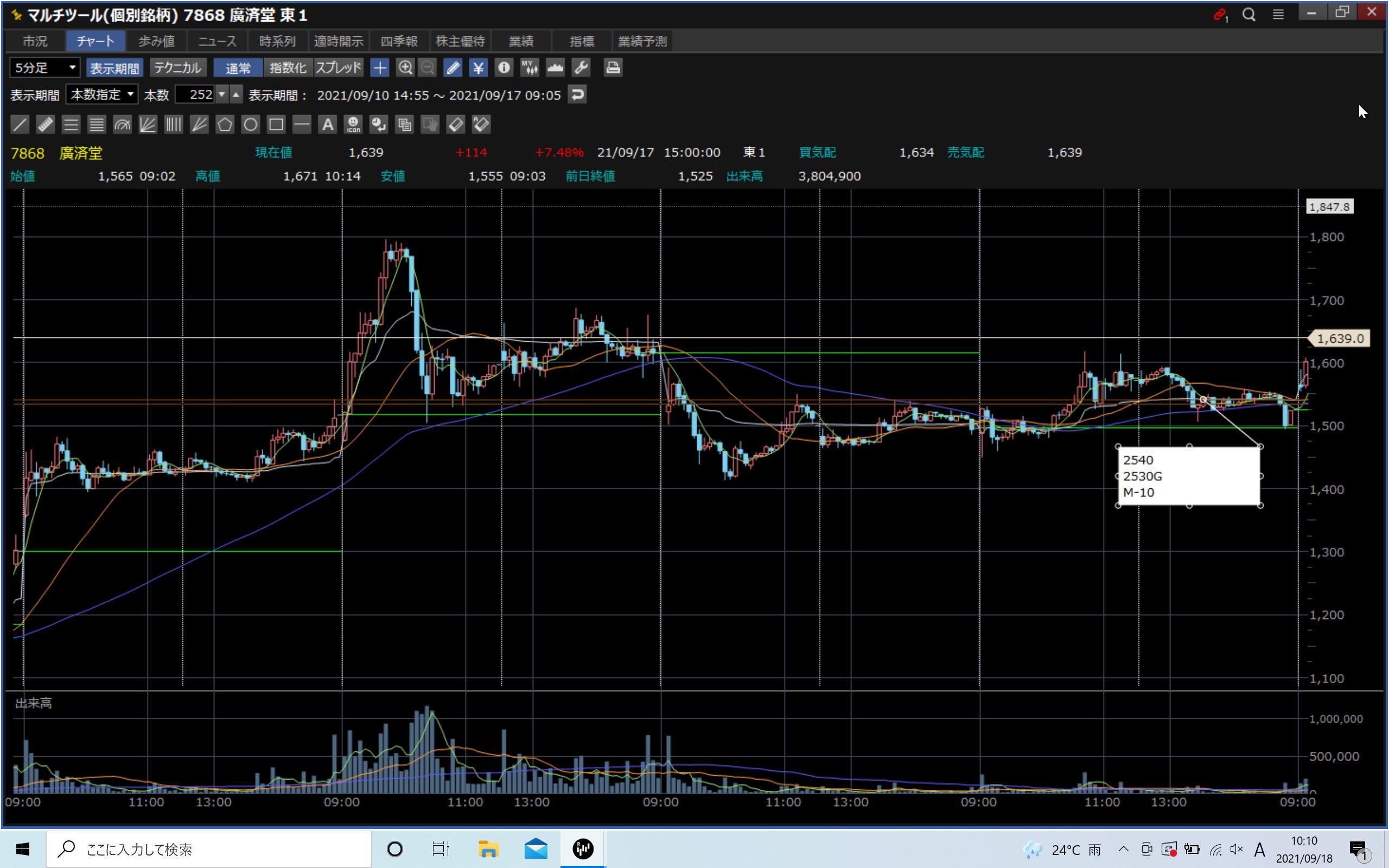 当日:場中、5分足アンダー、長い下髭でエントリー〇