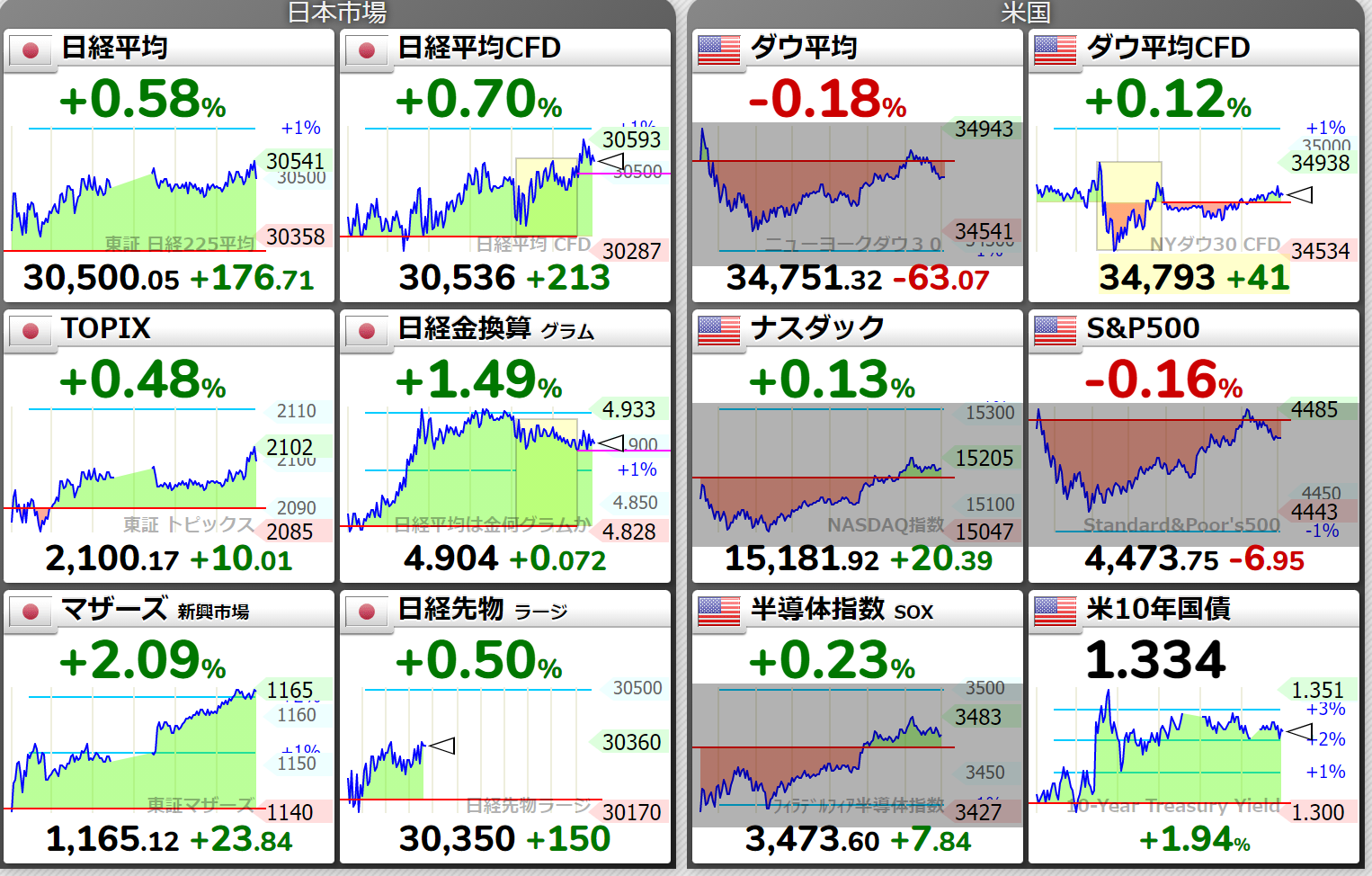 日経平均 30500.05 +176.71 ( 159933 ) 東証1部 1423 / 645 154 / 9