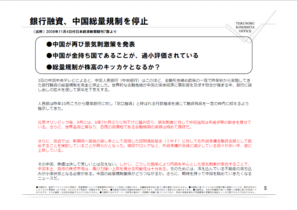 北京オリンピック後、9月には、6年7か月ぶりに利下げに踏み切り、