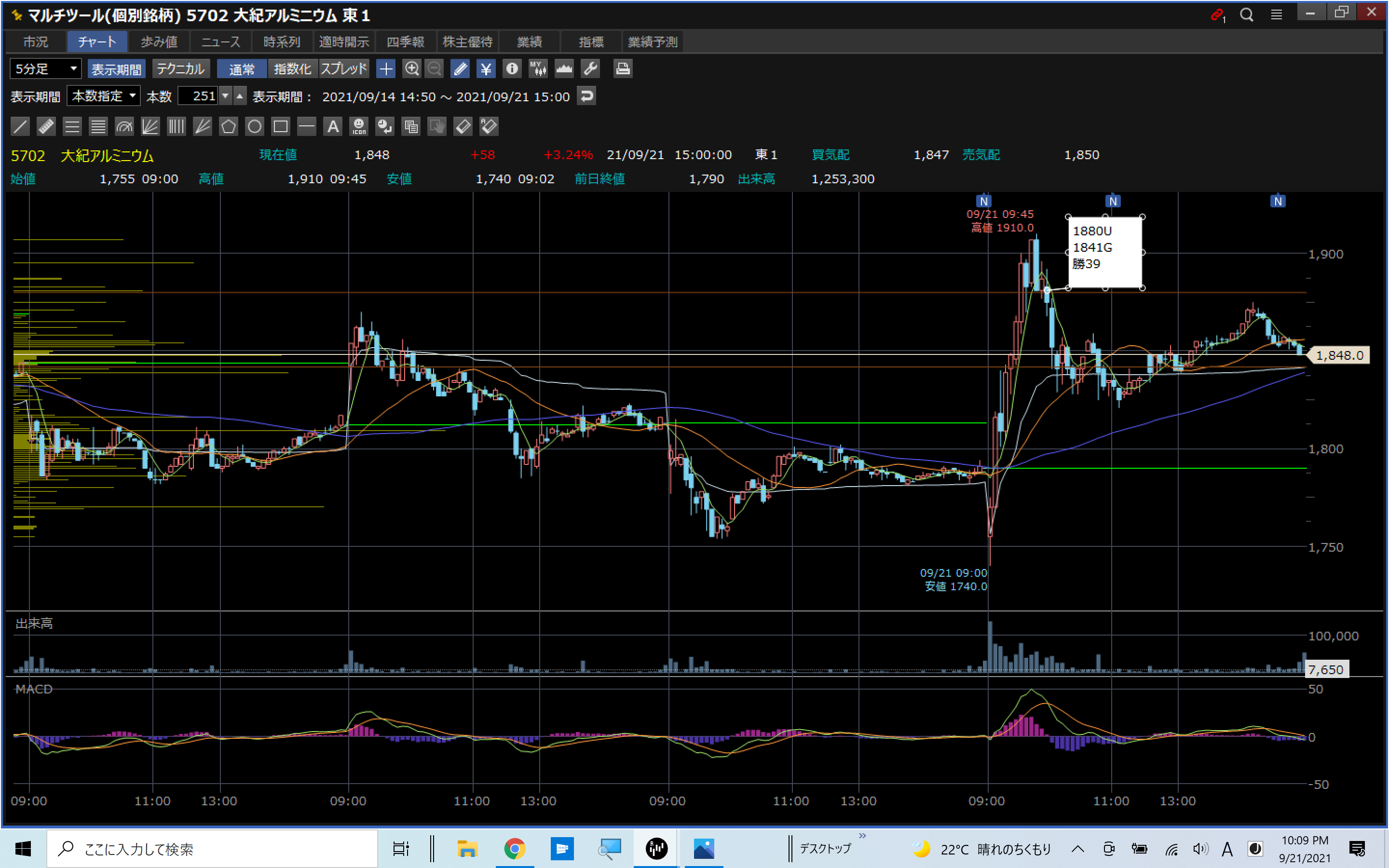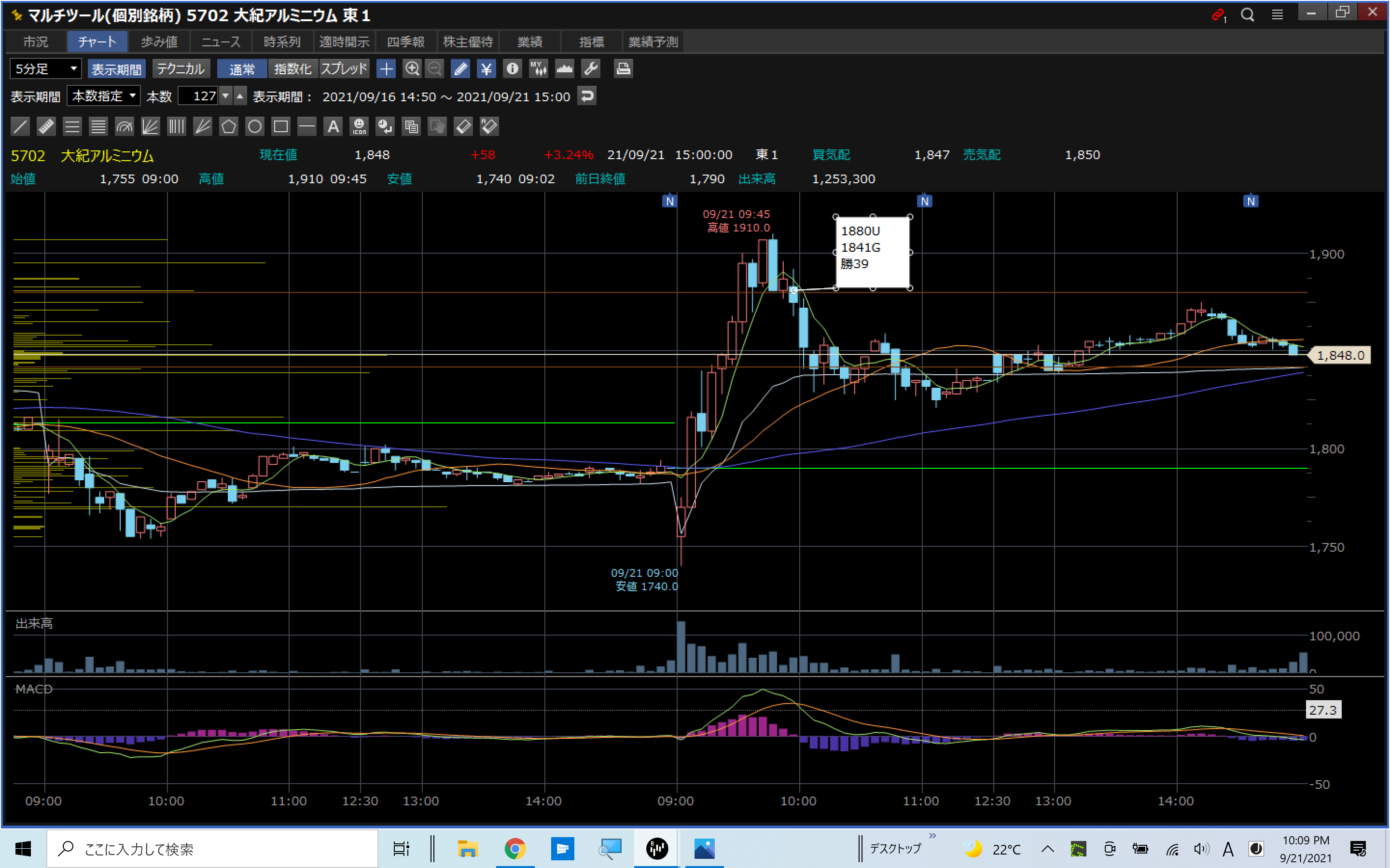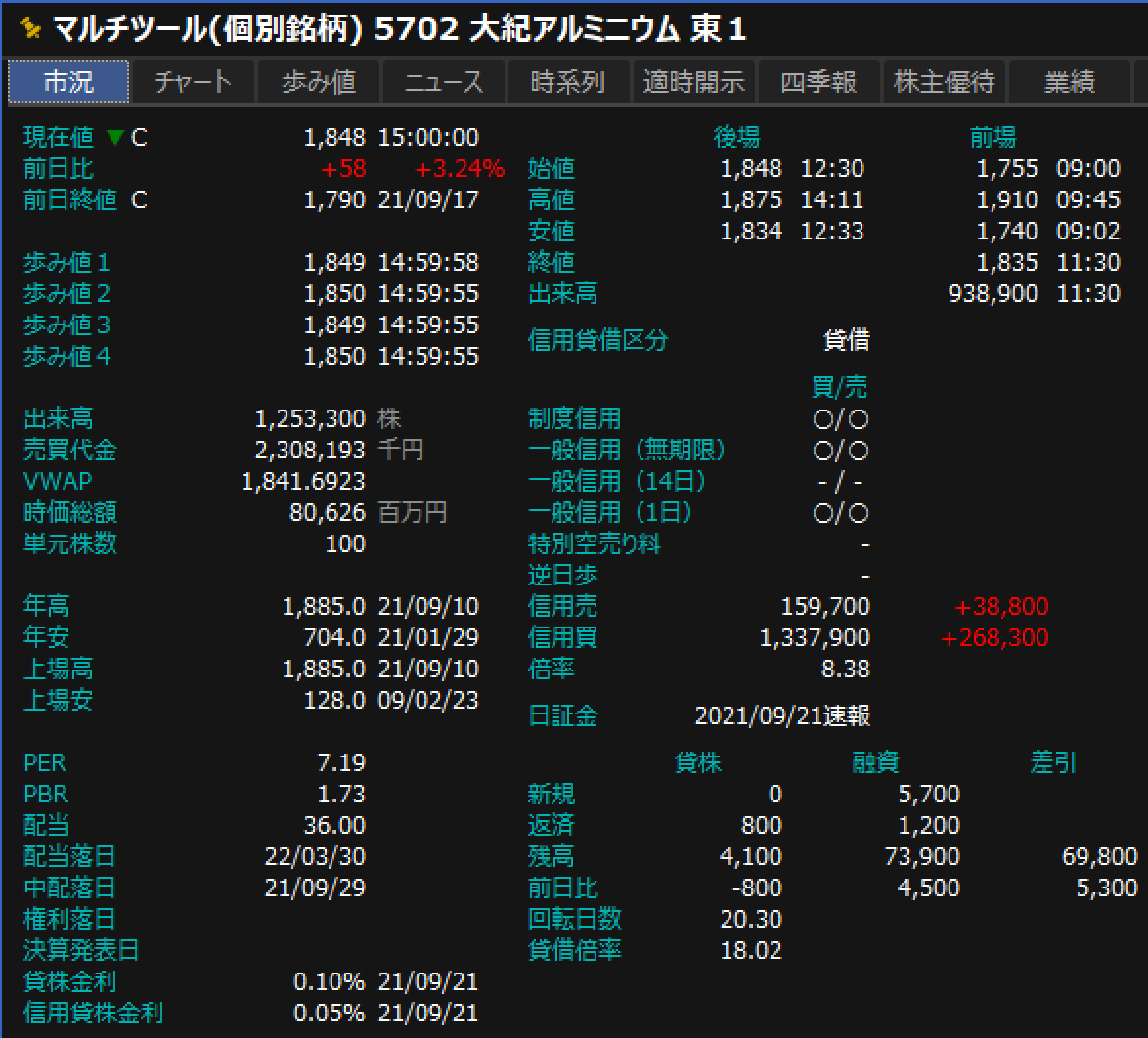 VT:5702 大紀アルミニウム K39U 戦略前日下落