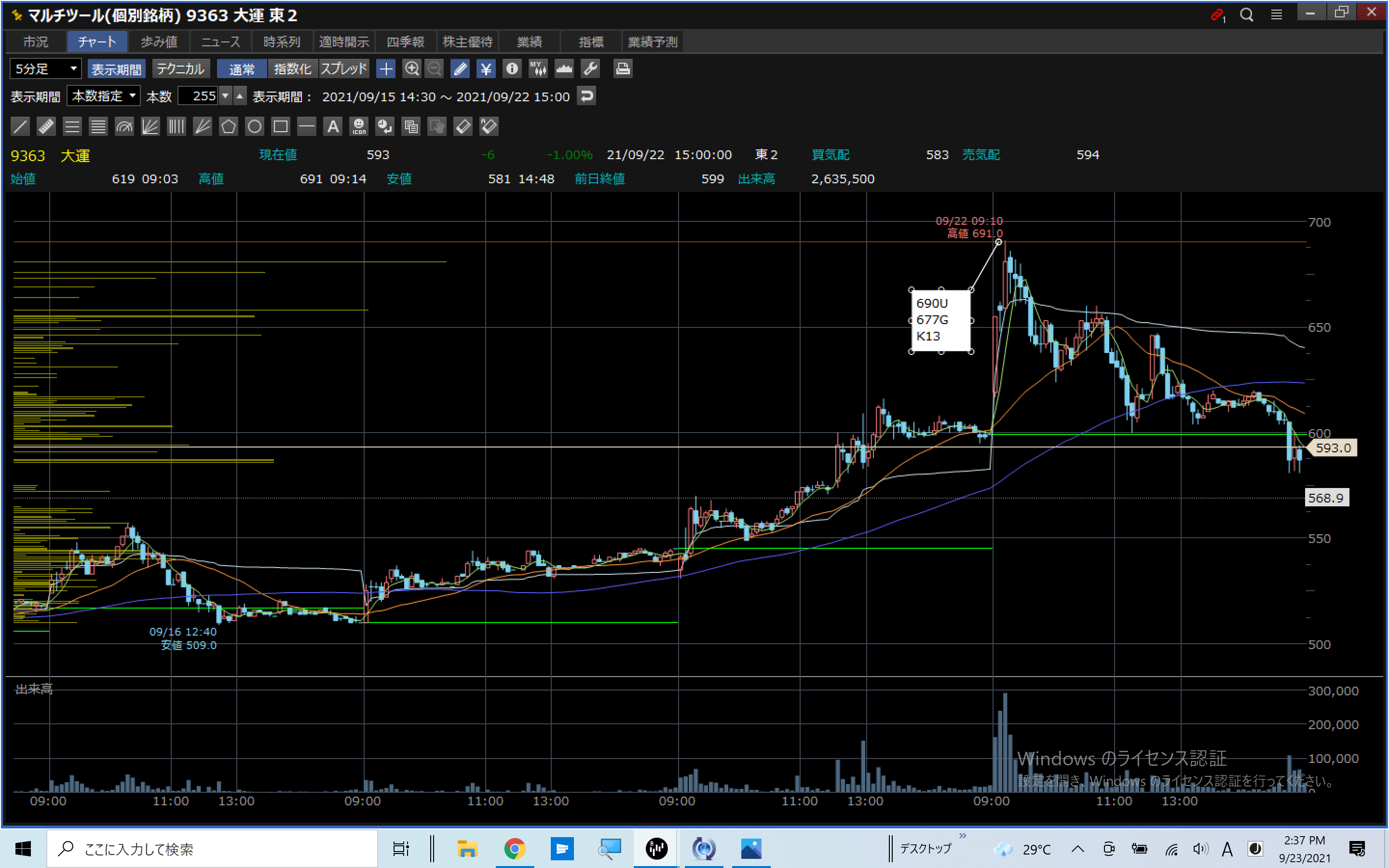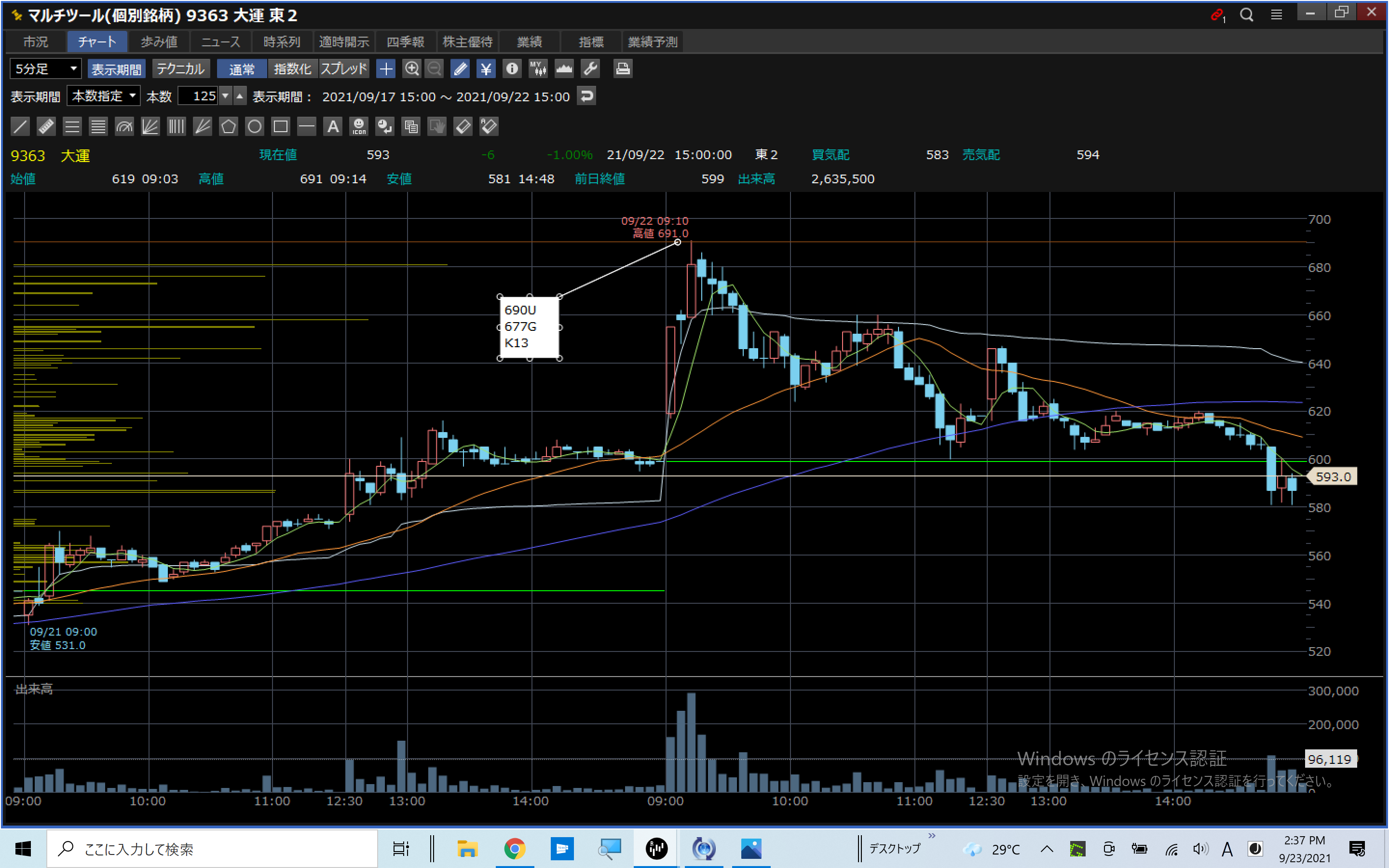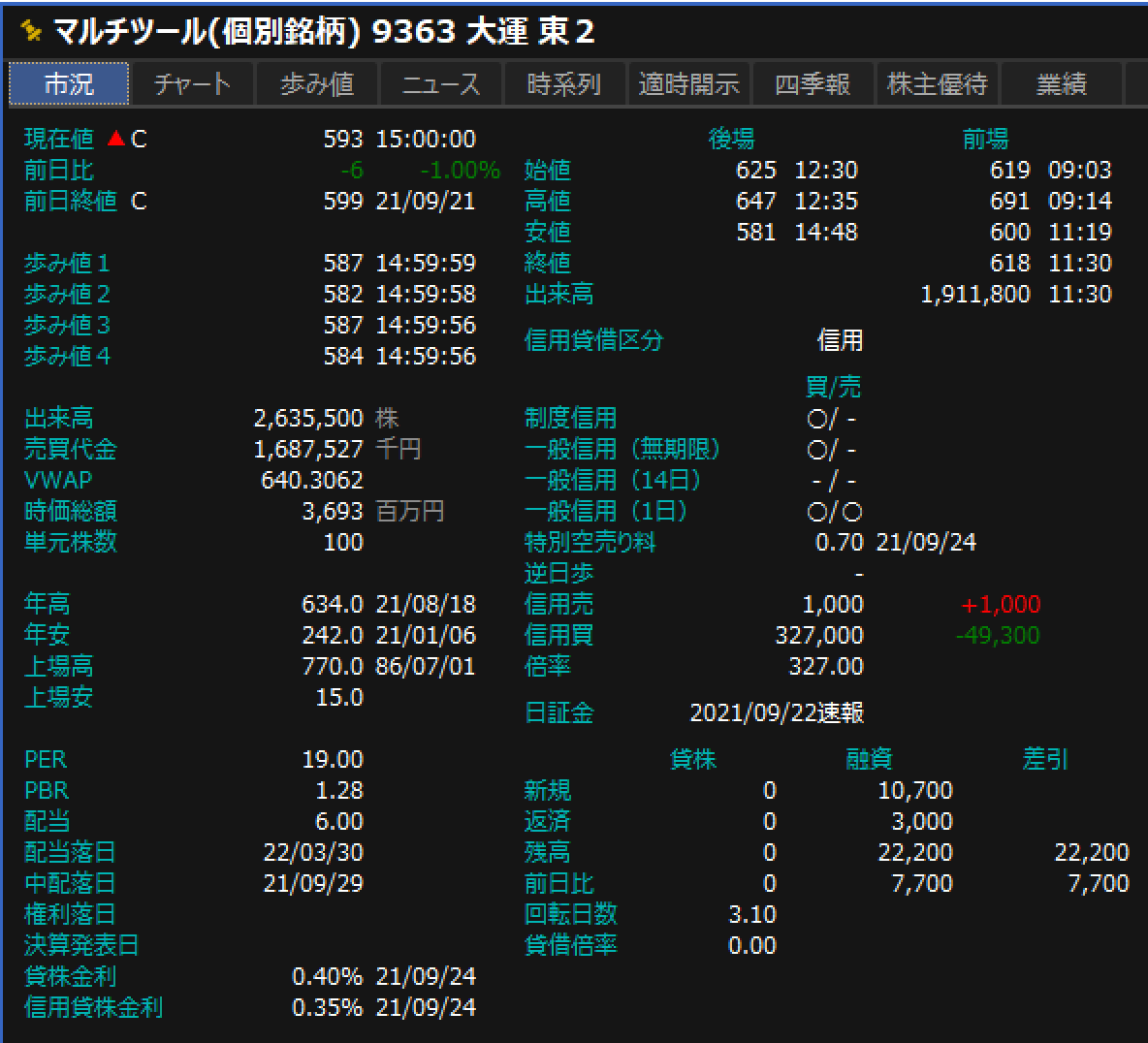 VT:9636 大運 K13 U 信用前日上昇