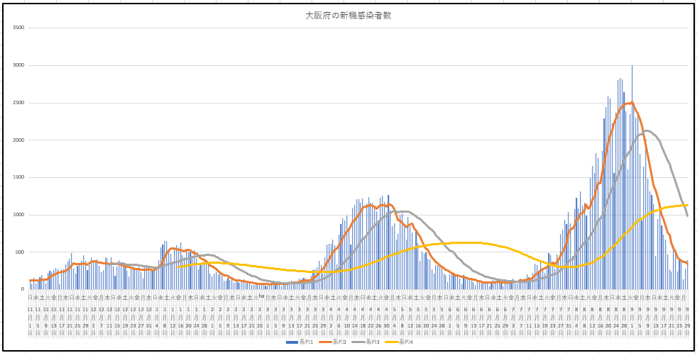 9月29日(水)までの新規感染者数の推移を、ひさしぶりに、
