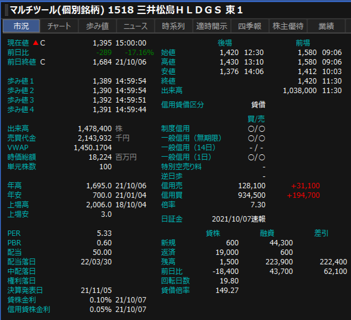 RT:1518 三井松島HD M-4,430円