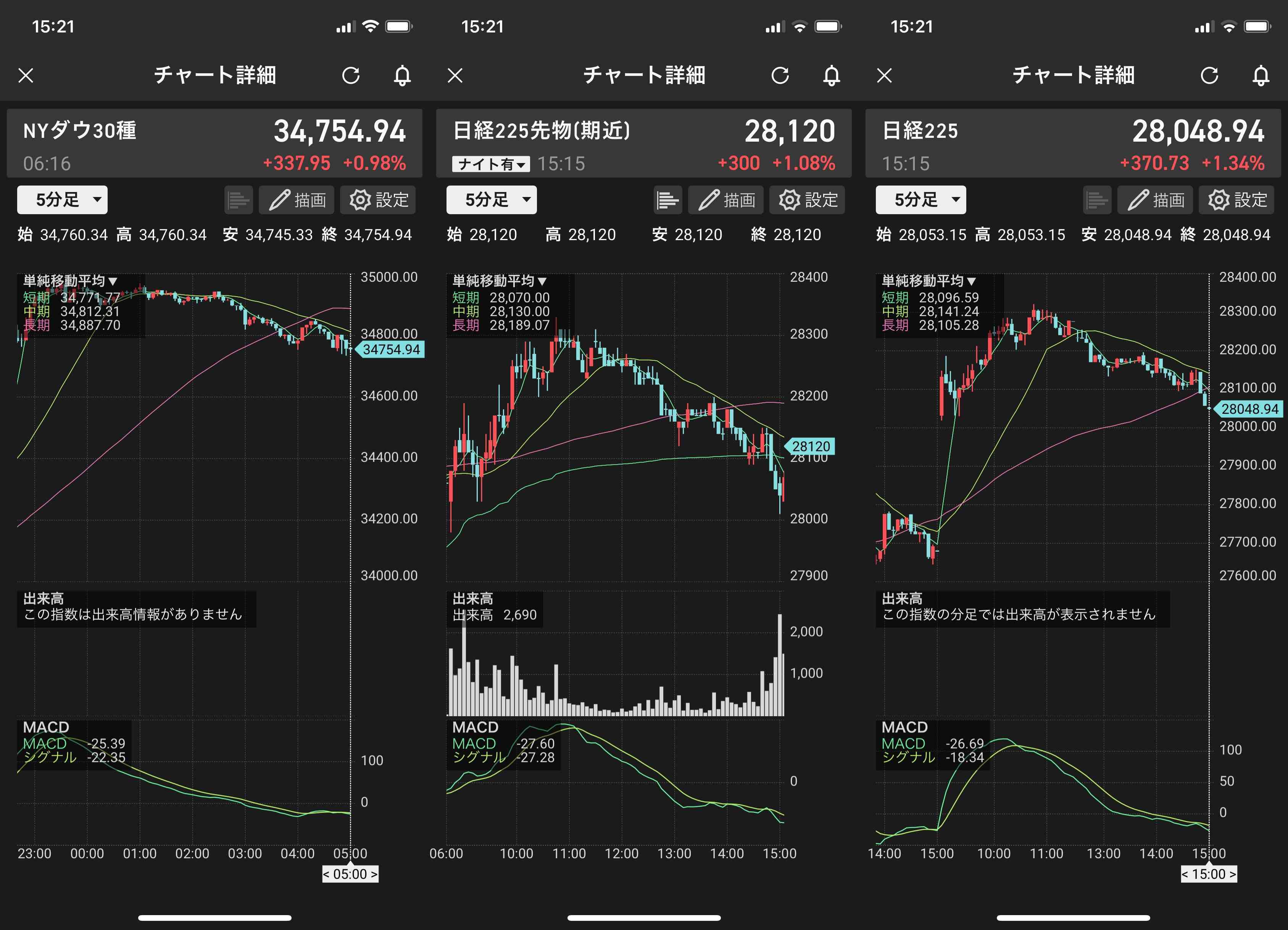 NYダウ 34754.94 +337.95 (10月 7日) 米国10年国債利回り 1.576 %