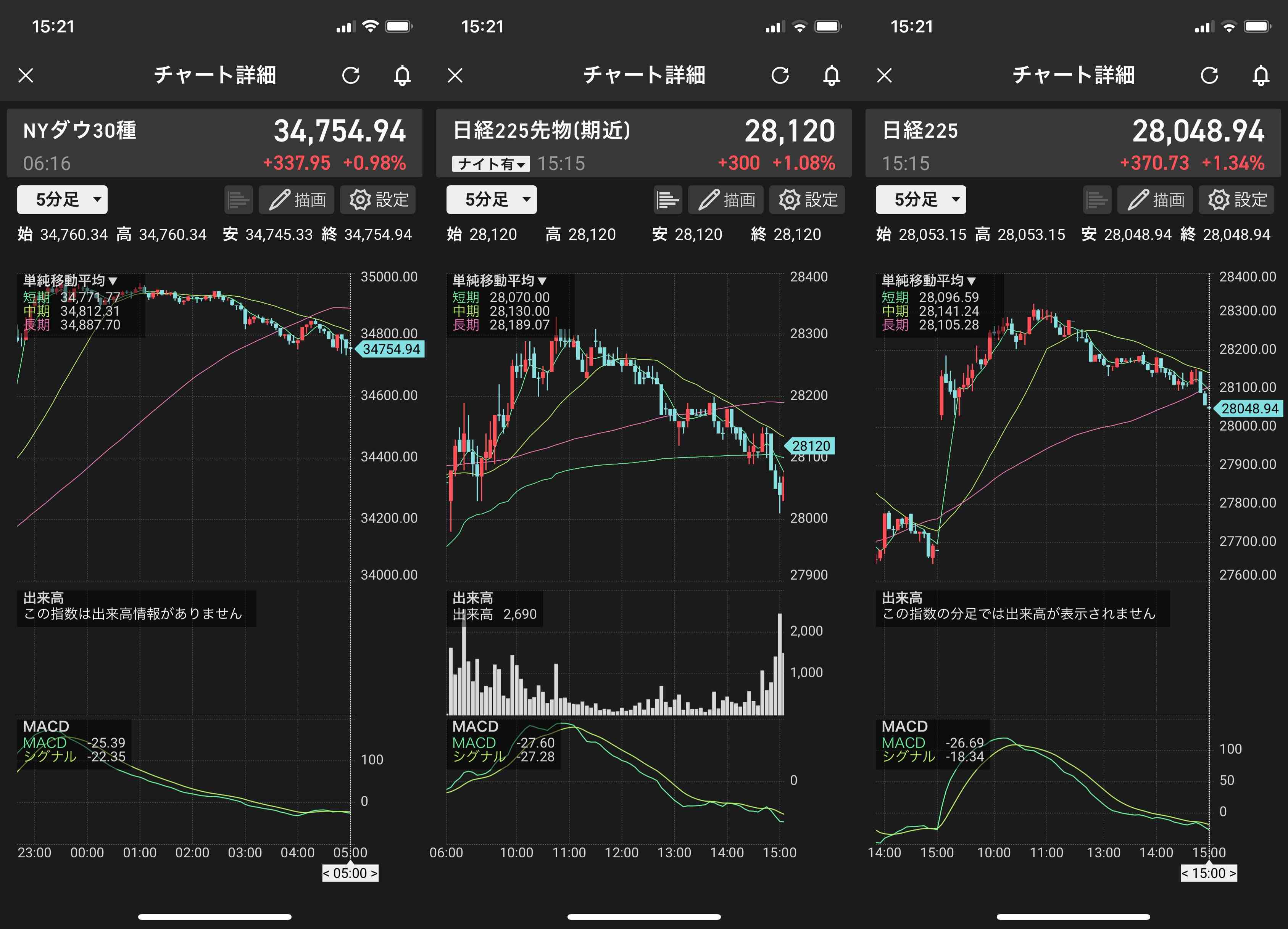 NYダウ   34754.94 +337.95 (10月 7日) 米国10年国債利回り 1.576 %