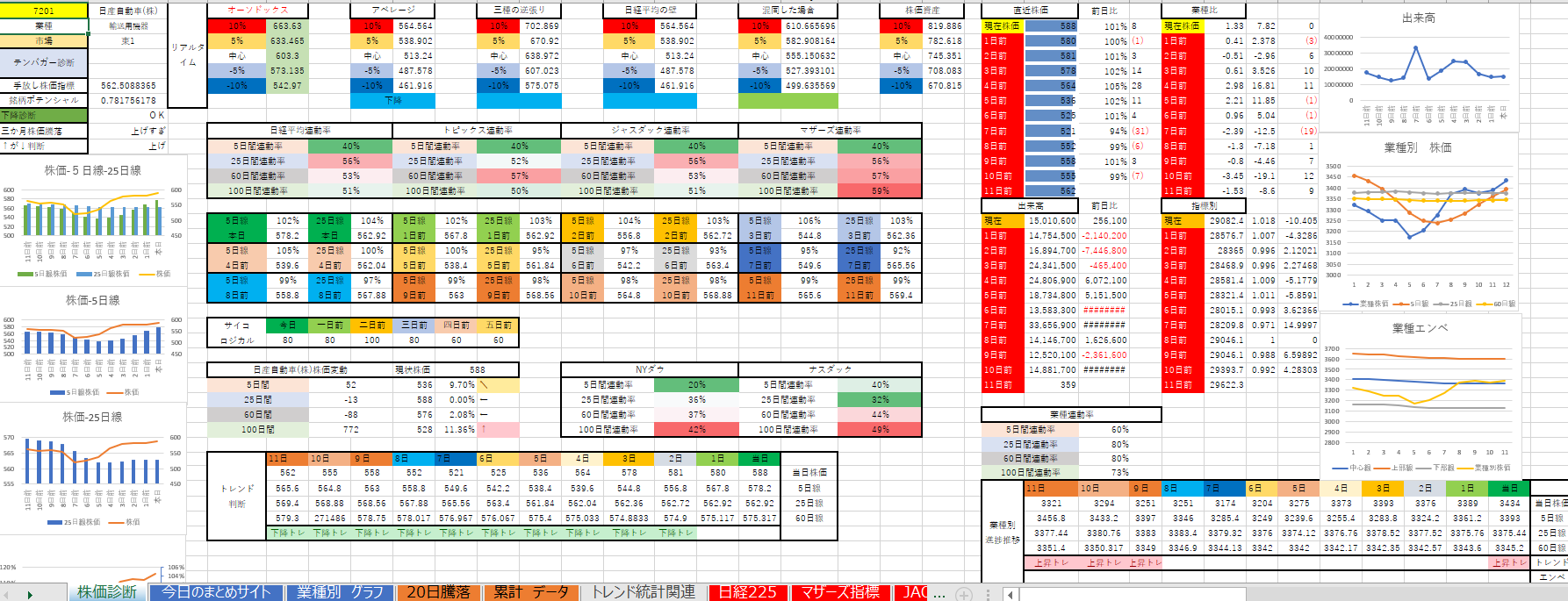 写真1枚目上の色がついているものが値上がり銘柄数を表します。