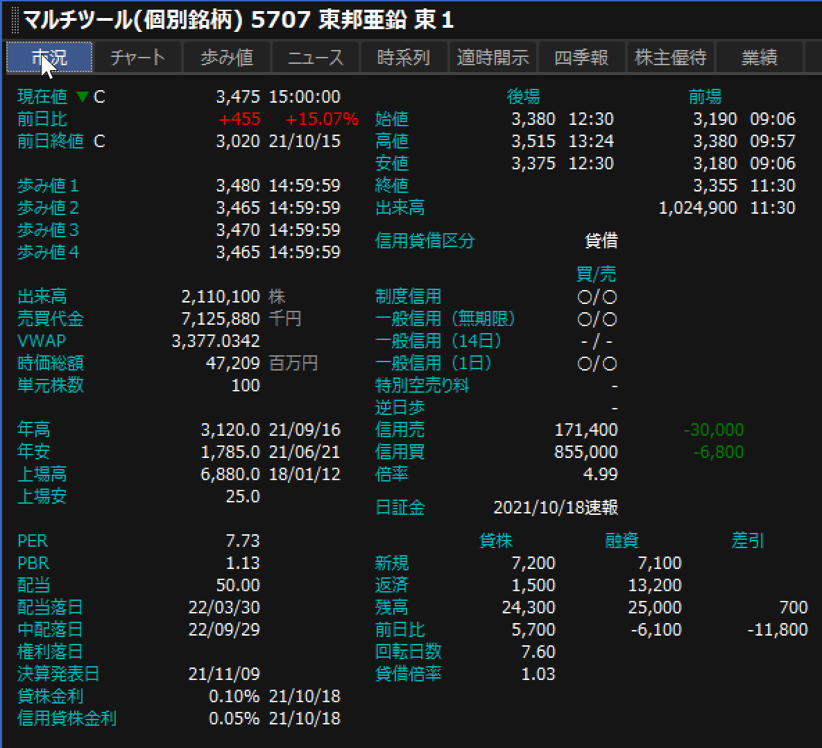 RT: 5707 東邦亜鉛 3,400円