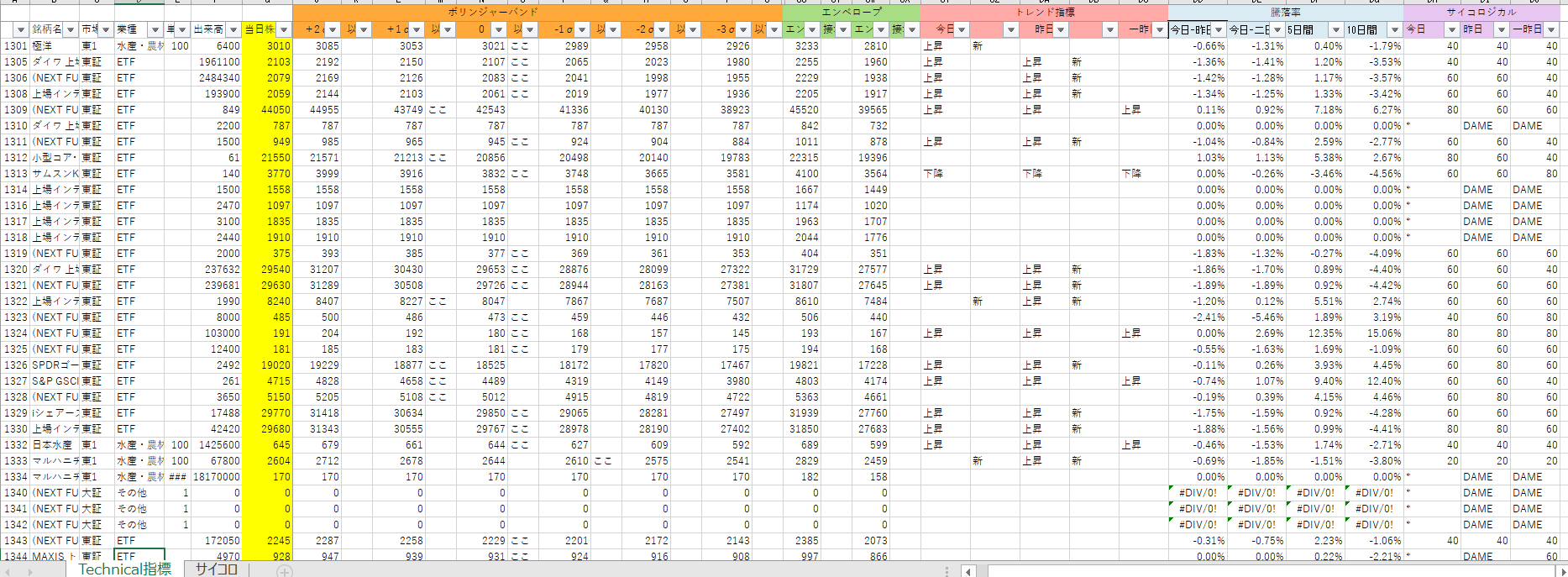 ※最後の画像はテクニカル指標をいくつか自動算出できるシートとなっております。これだけで再現性の高い取引ができるようになります!