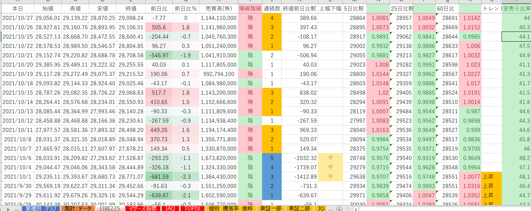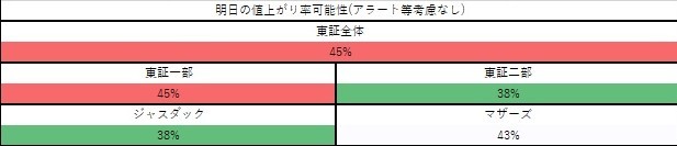27日現在の値上がり銘柄数率平均は 47% となっております。