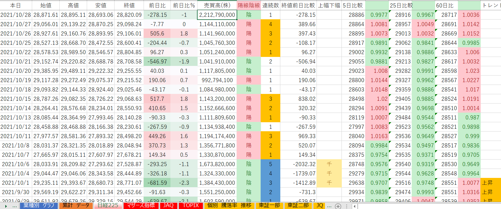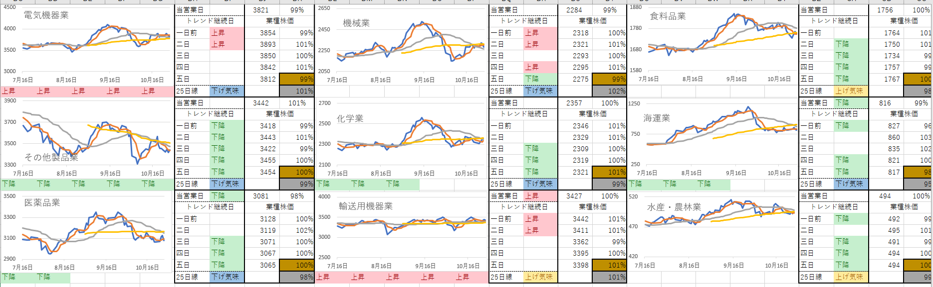 下降トレンド 9業種(±0業種)