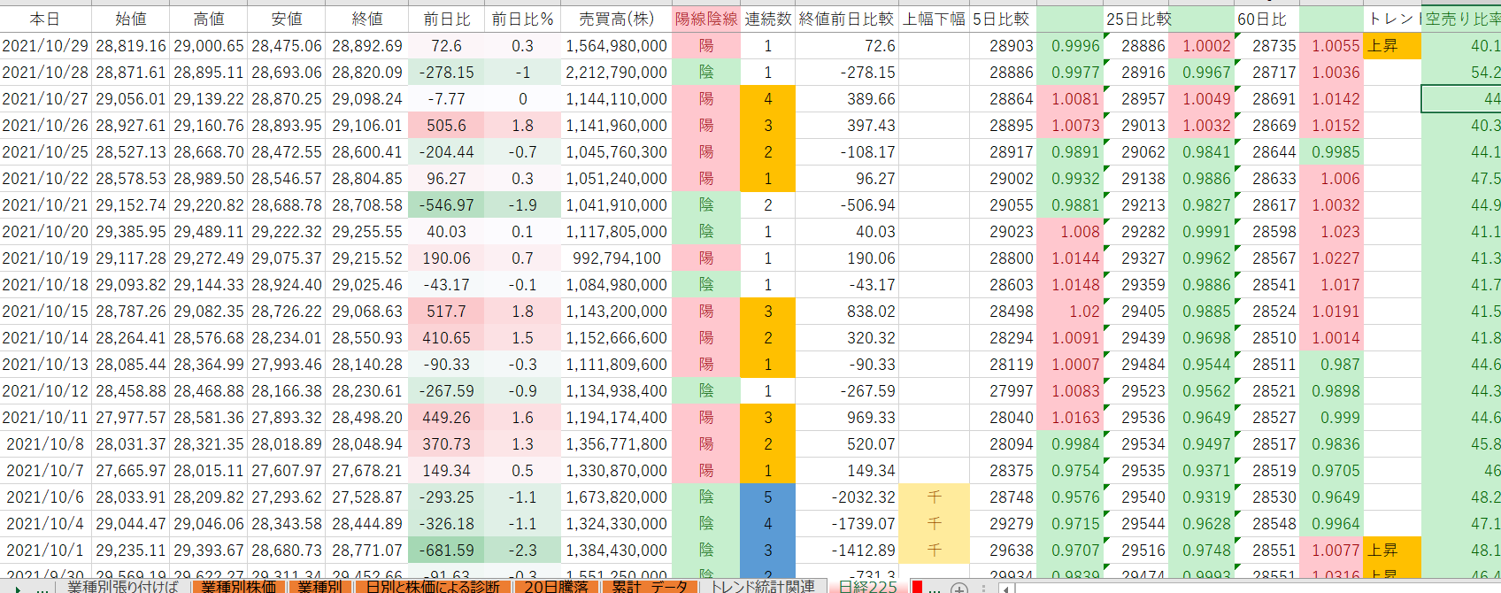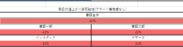 画像中央にあるのが、早朝に出した値上がり銘柄率数の予測です。