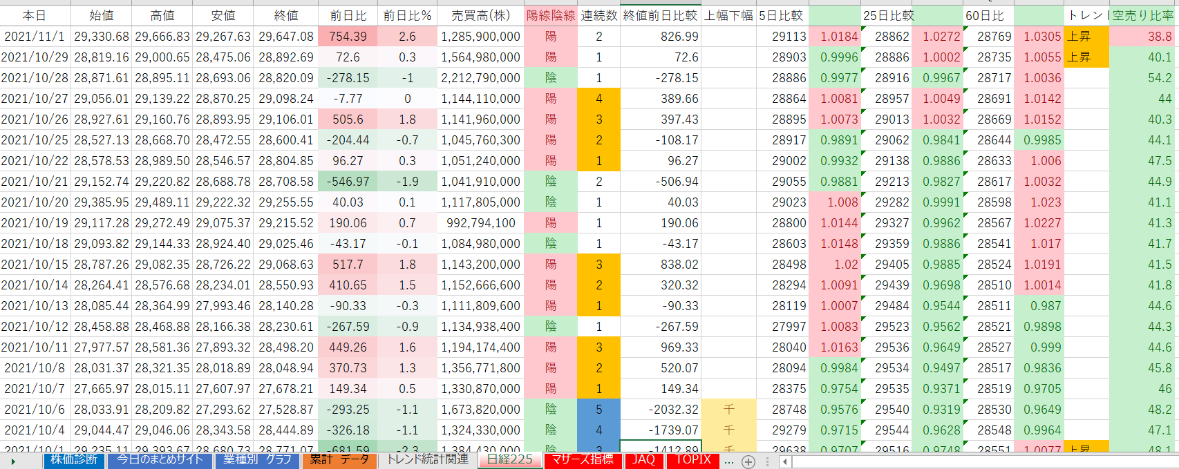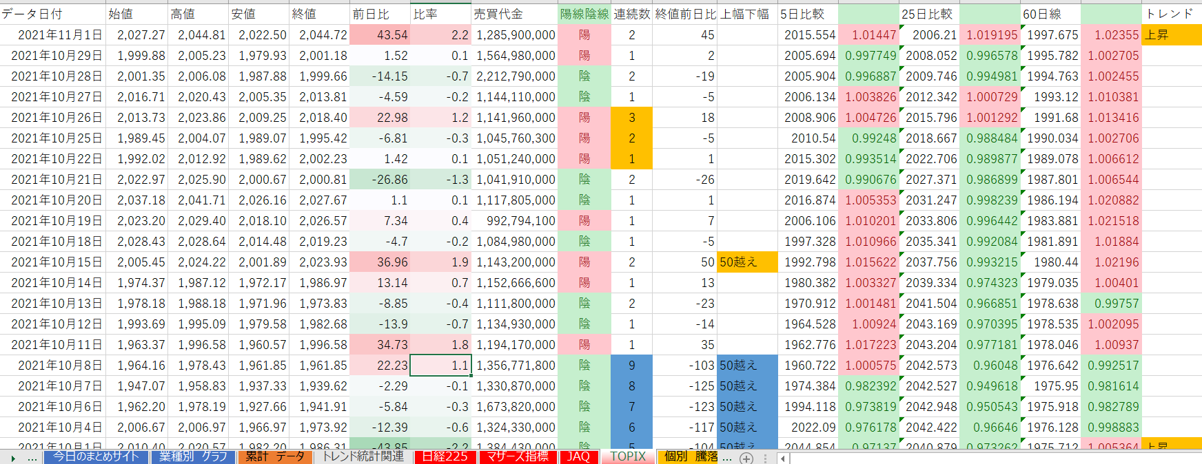 トピックス上昇トレンド平均継続日数 17日 となります。