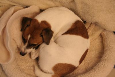 真夏の全開お昼寝スタイルとは対照的に、冬はアンモナイト風。