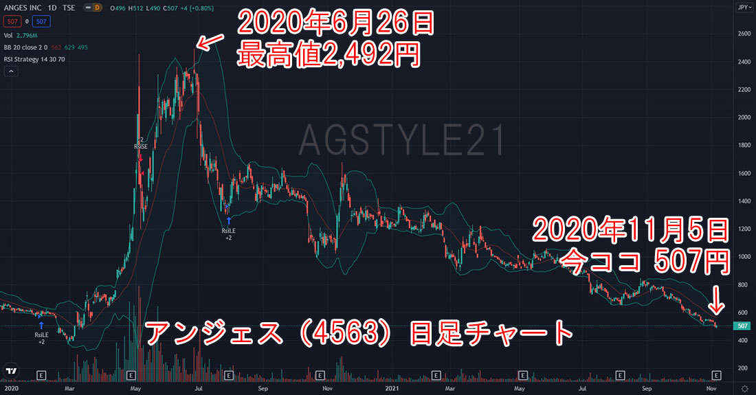コロナワクチン完成時には株価も爆騰するのだろうな~と引き続き株価をウォッチしていたのだが、株価778円で損切り後も下落は続き昨日11月5日の終値は507円だった。