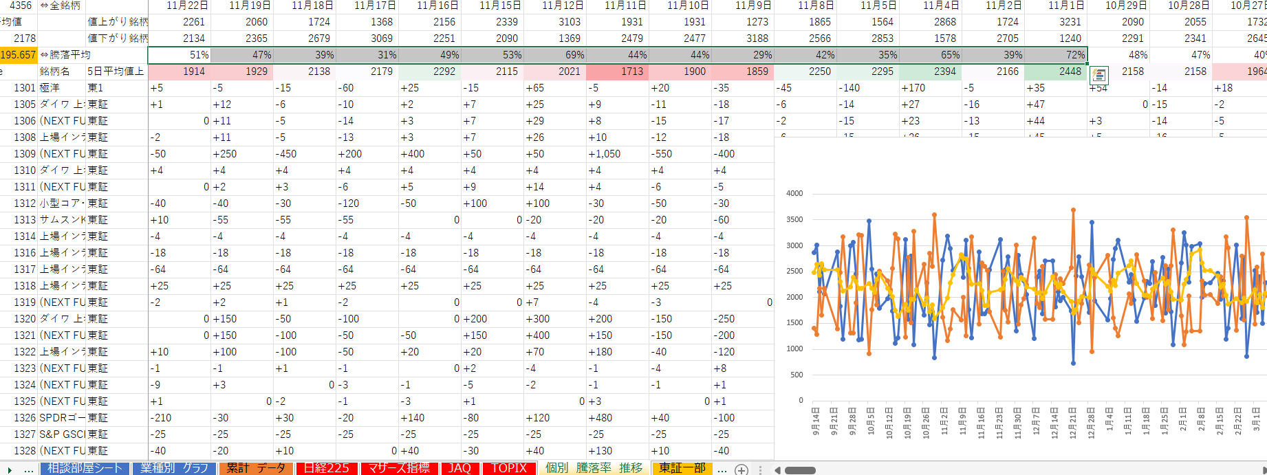 ・1日の値上がり銘柄数、値下がり銘柄数がどの程度になるかの予想