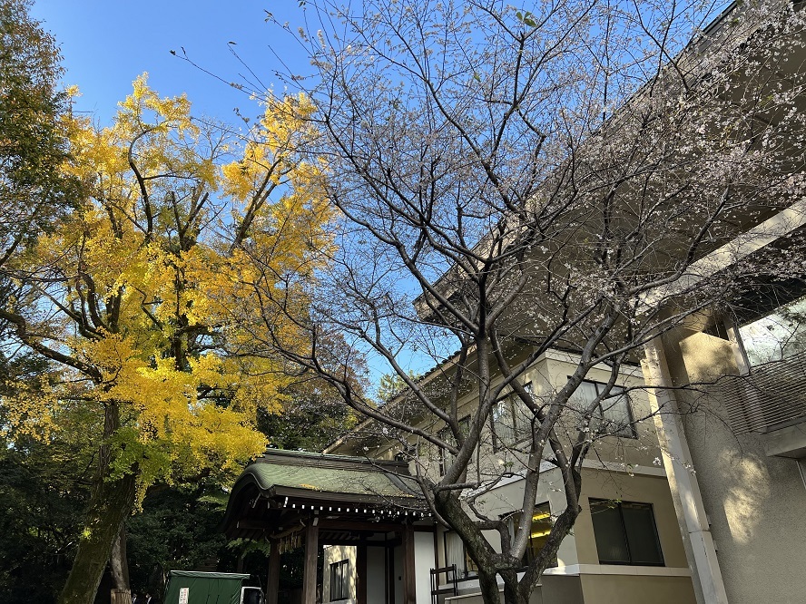 銀杏の紅葉の黄色が鮮やかで綺麗ですね。