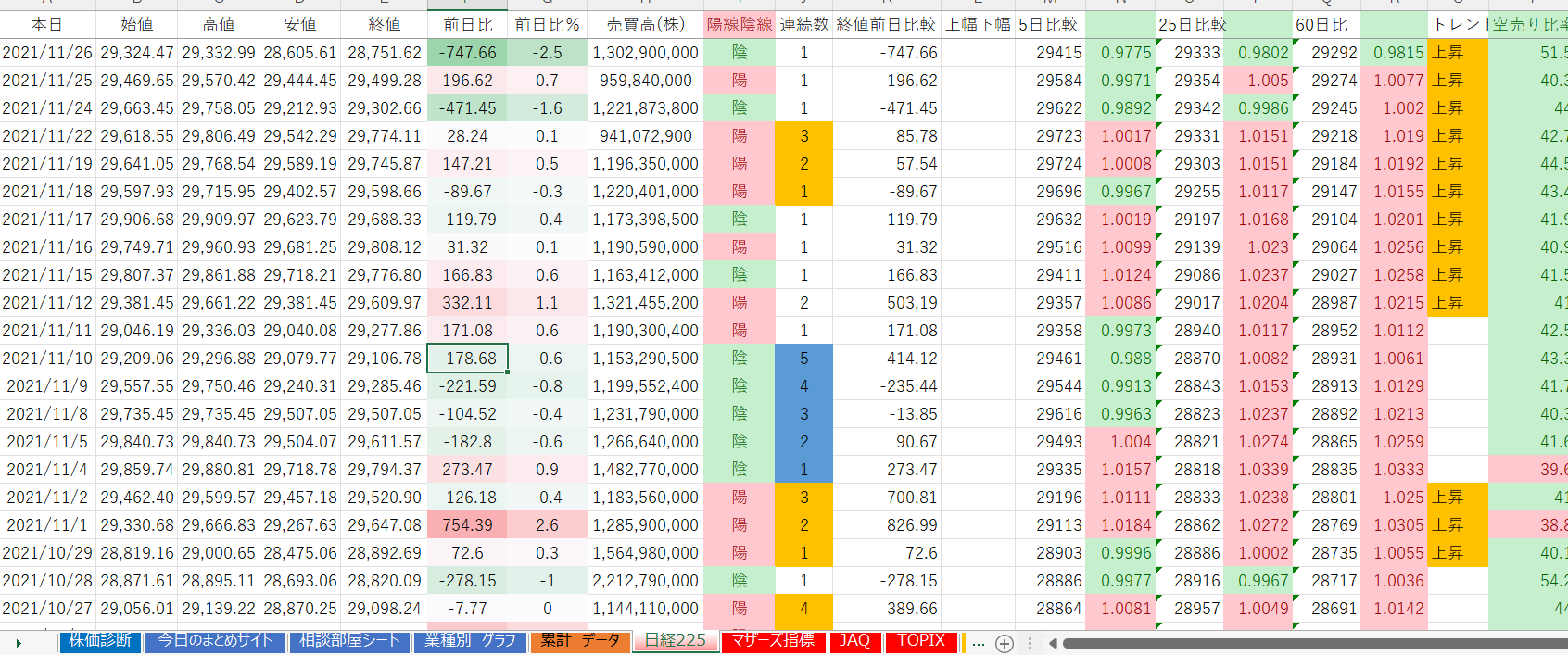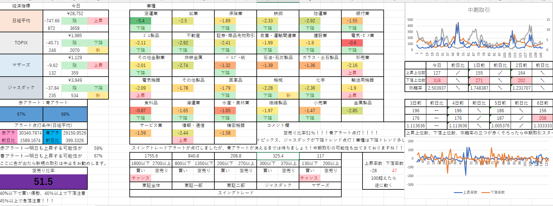 上昇トレンド業種、下降トレンドを見れるようにしました。