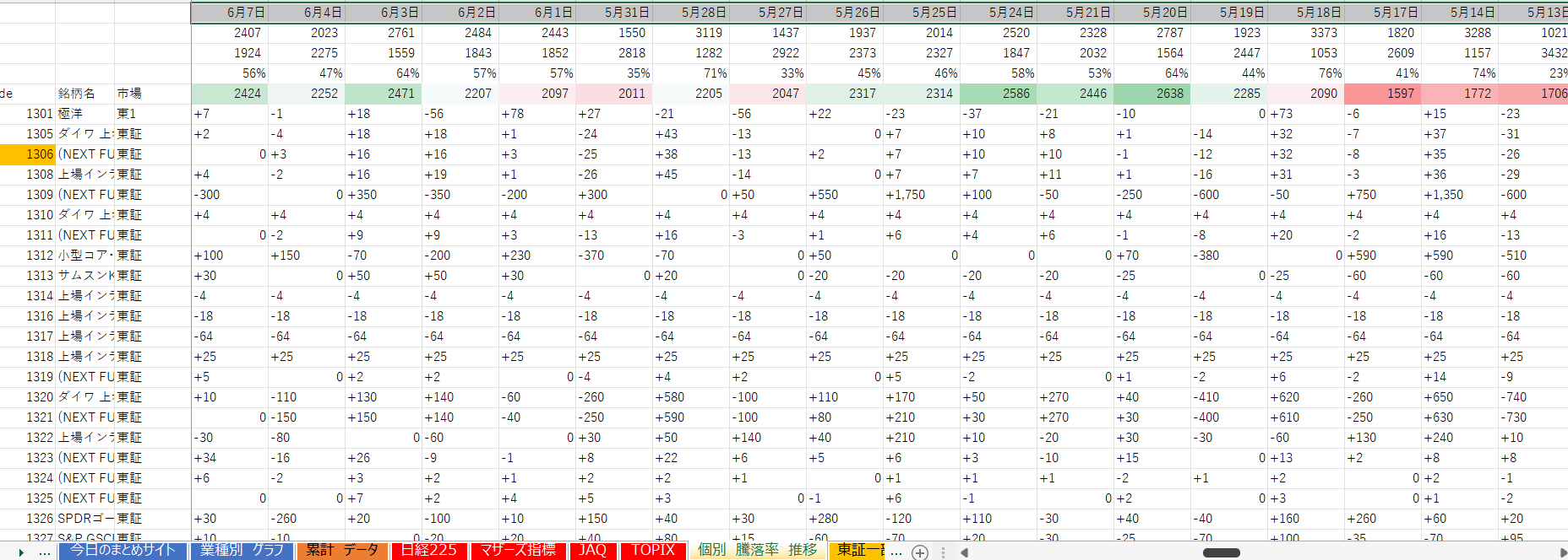 下降トレンド 26業種(+1業種)