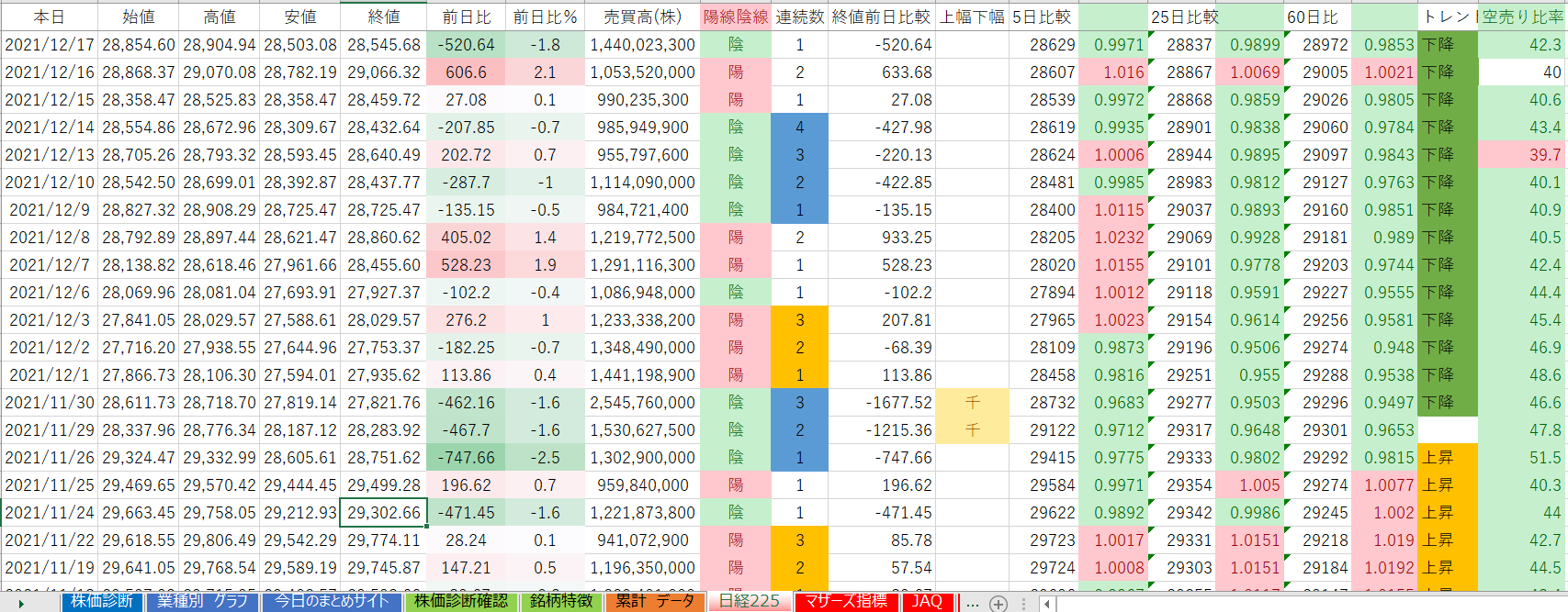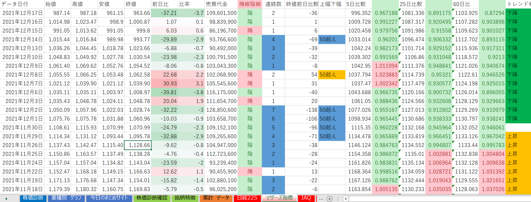 下降トレンド継続日数