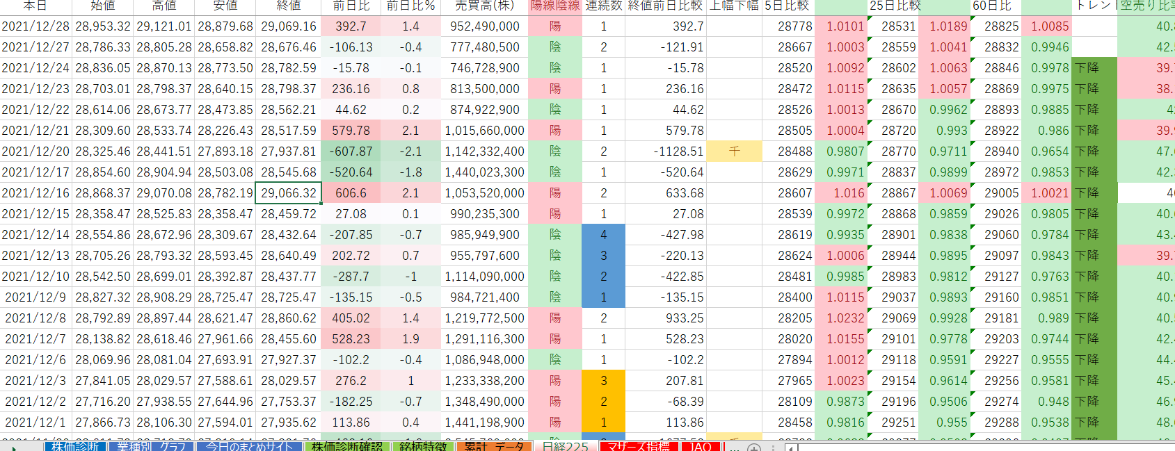 日経平均の下降トレンド継続日数が19日です。