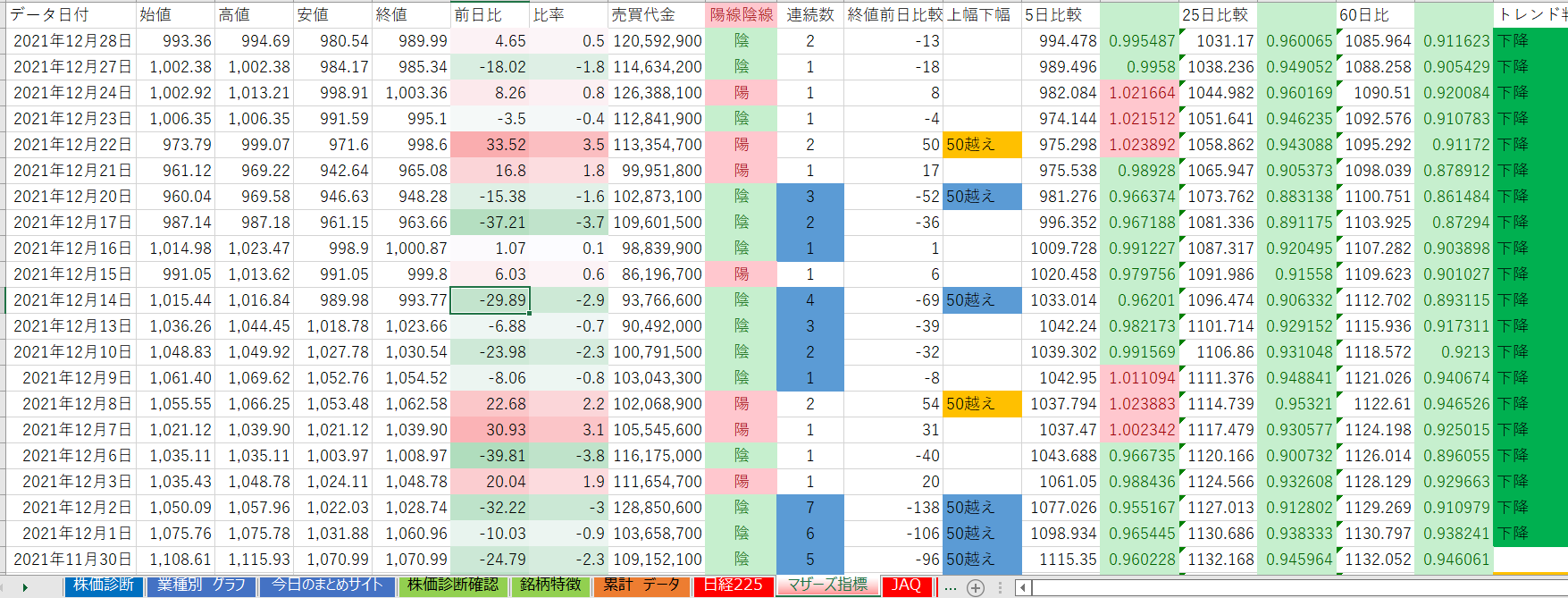 下降トレンド継続日数