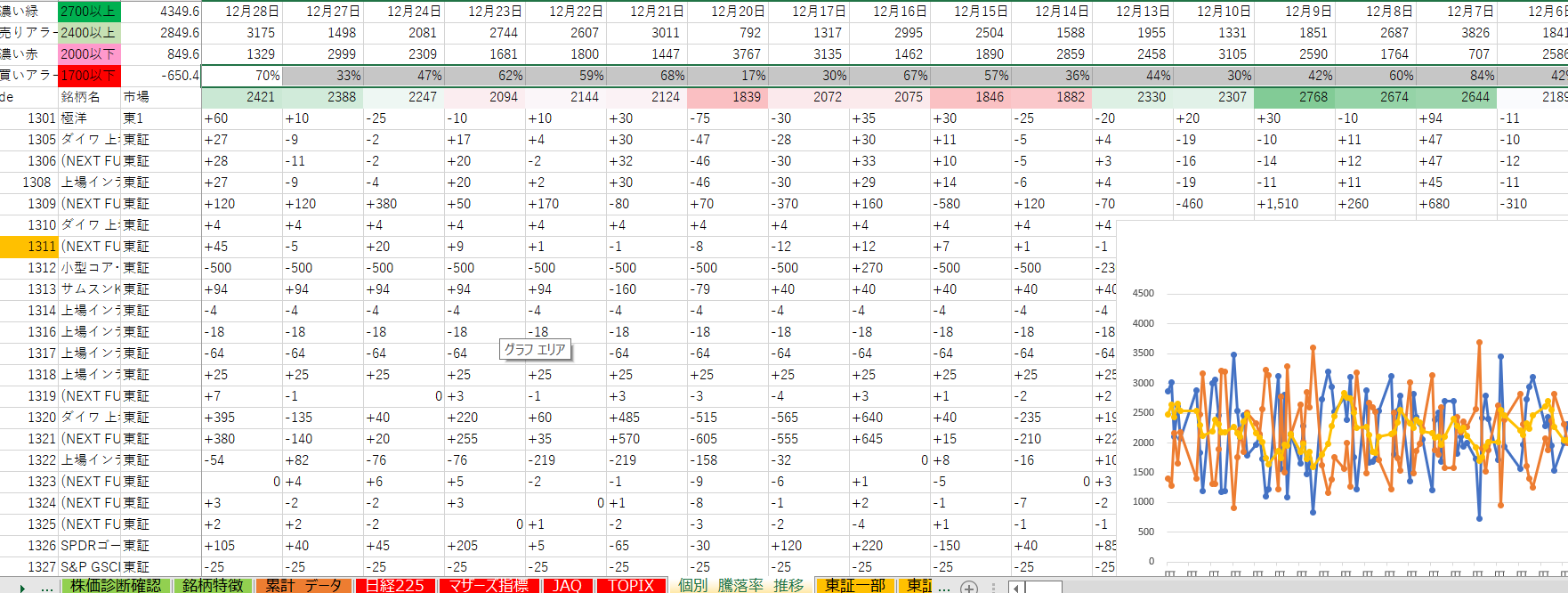12月はここまで、日別東証全体の値上がり銘柄率平均 51%(前日比₊1%)