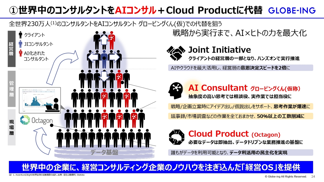 ①世界中のコンサルタントを AIコンサル +Cloud Productに代替