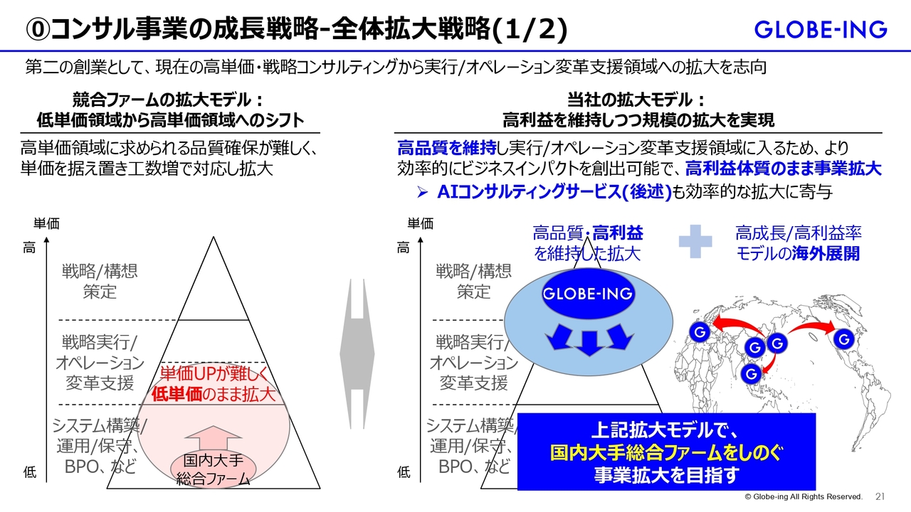 実際に現在でも、そのようなかたちで実行部分への支援を行っています。今後は、このモデルを海外展開も含めて実施していく予定です。この展開を通じて、国内の大手総合ファームを超える事業拡大を目指していきます。