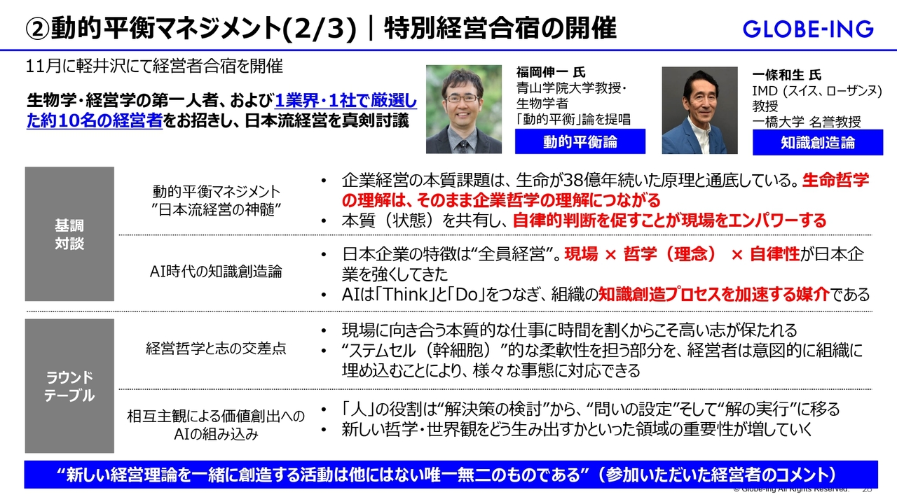 11月に軽井沢にて経営者合宿を開催 ②動的平衡マネジメント(2/3)特別経営合宿の開催