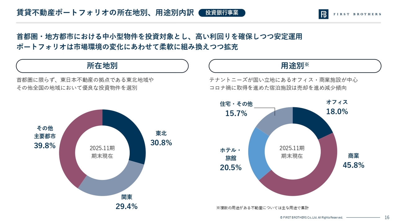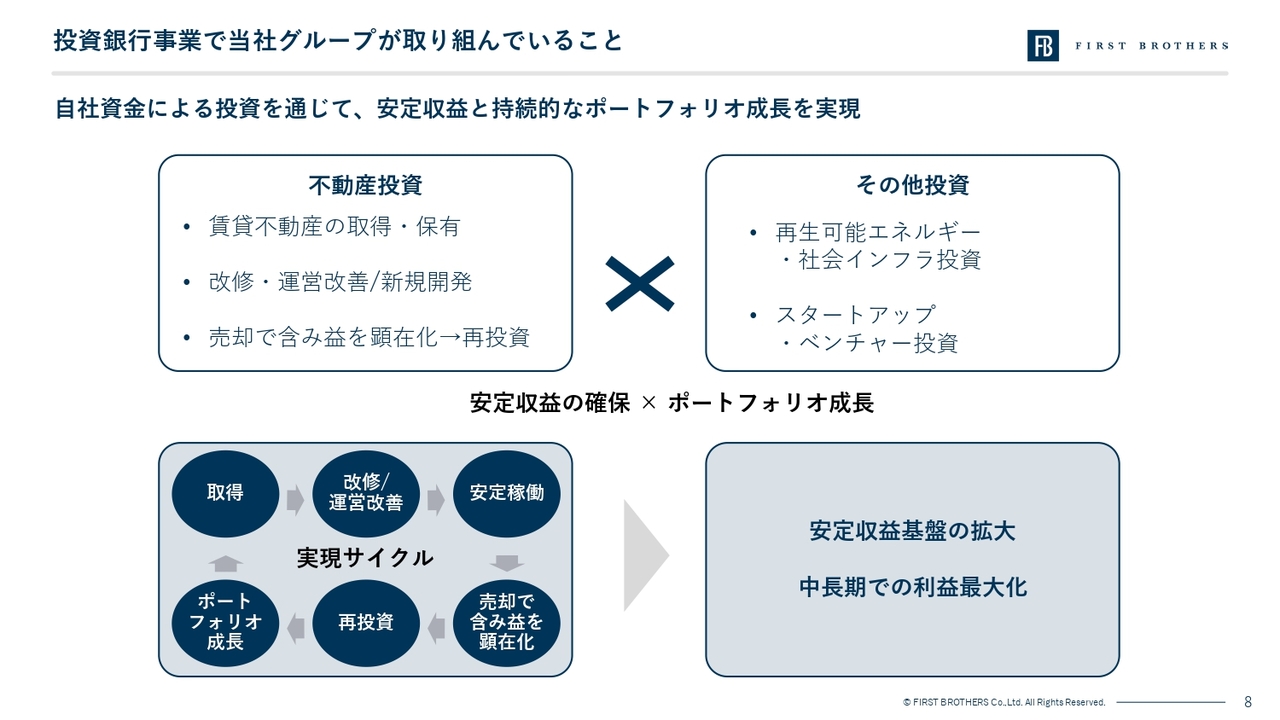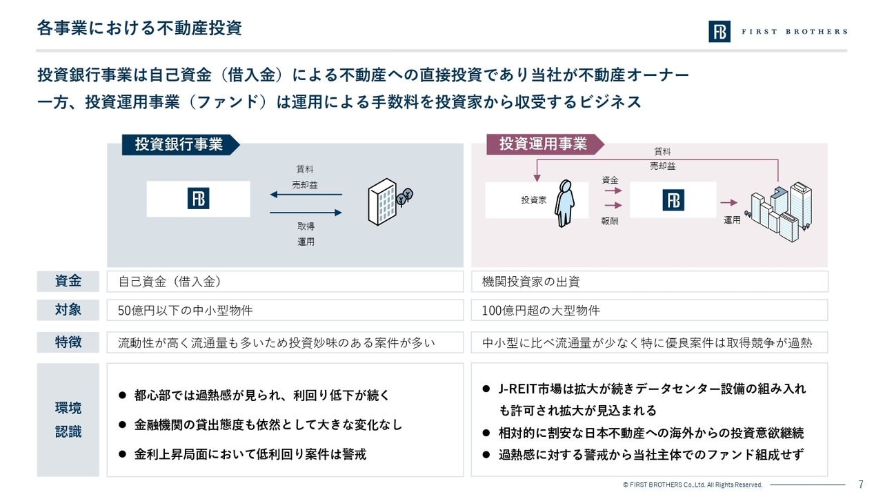 こうした2つの事業を並行して運営することで、資本効率と安定的なフィー収益を両立し、景気局面に応じた柔軟なポートフォリオ運営を行うことが可能であることが当社の強みです。