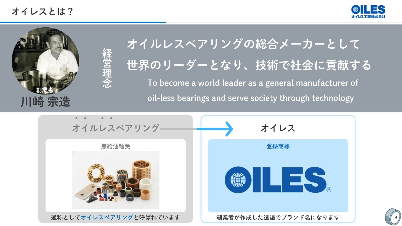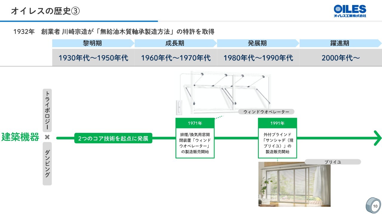 佐藤:オイレスという言葉は創業者が考えた造語ということで、オイルレス、オイレスと、これからのキーワードとなりそうですね。御社はどのような製品を扱っている会社なのでしょうか?