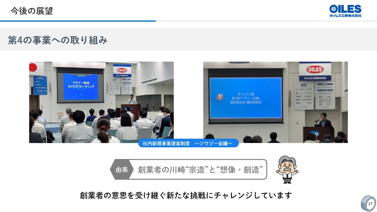 坂入:最後に、これまでご紹介した3つの事業以外にも、当社には注目していただきたい取り組みがありますので、そちらについてご説明します。既存の3つの事業に続く新たな成長の柱を生み出すため、社内新規事業提案制度「ソウゾー会議」を2024年秋から開始しました。
