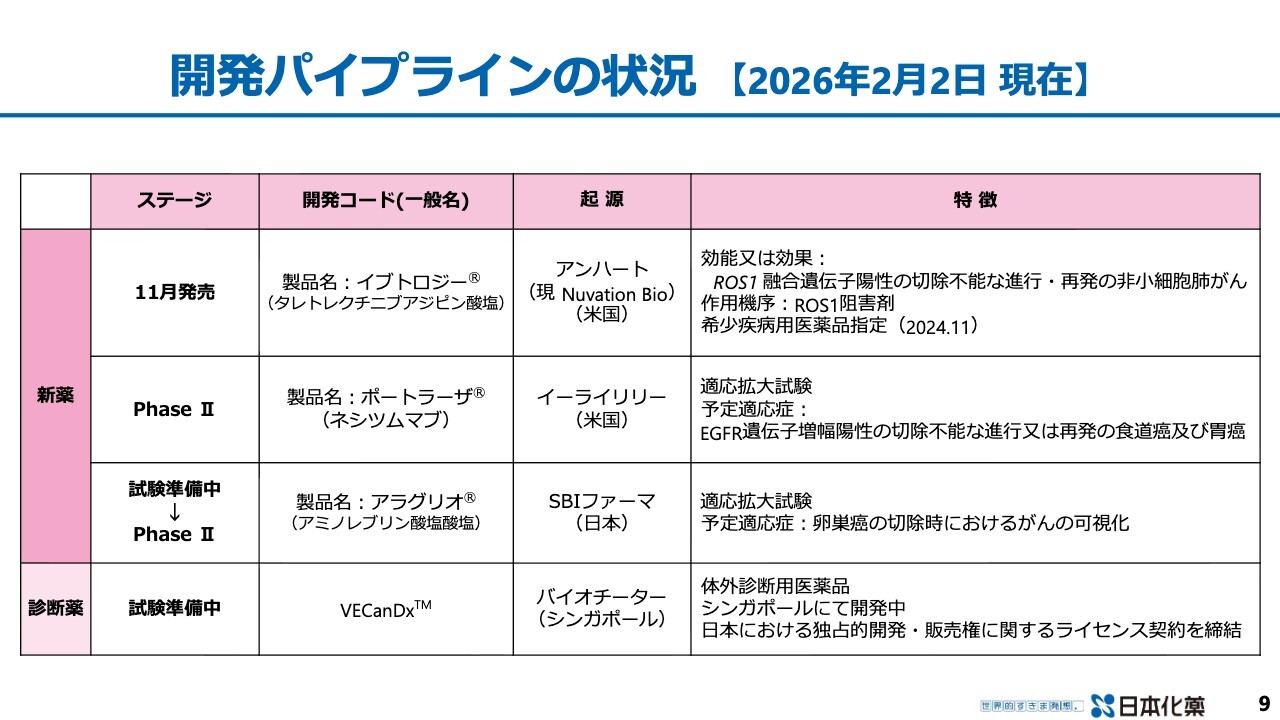 スライド一番上にある、11月に発売された「イブトロジー」は発売後、医療機関での認知度が非常に高まっており、当初の予想を超える売上が計上できる見込みです。