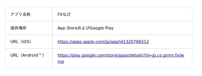 「FXなび」は、これからFXを始めたい方や投資未経験の方向けに、デモトレードで本番さながらの体験ができ、ゲーム感覚で学べるスマホアプリです。FXの醍醐味であるレバレッジに加え、スプレッドも反映した超本格デモトレードで、FX初心者にもわかりやすいチャートを使って利益と損失を体験することができます。また、デモトレード以外にも、投資に関わる様々な情報を提供するコラム記事、コミカルなFX解説マンガなど、盛りだくさんになっており、FXをこれから始めたい方も、ちょっとブランクのある方も、楽しみながら知識を深められます。2018年のリリース以降、ユーザー様に寄り添った機能改善や、新機能の追加等、日々バージョンアップを続けており、多くのユーザー様から高い評価をいただいております。近年、個人のFX取引が活発化する中で、気軽にFX投資を始める方も増えています。しかし、FX投資はリスクを伴う投資商品であるため、正しい知識を身に付けたうえで安全に投資を行うことが重要です。「FXなび」は、リスクを体験して学び、十分に知識やスキルを身に付けていただくことで、安全に投資が始められるよう支援しております。