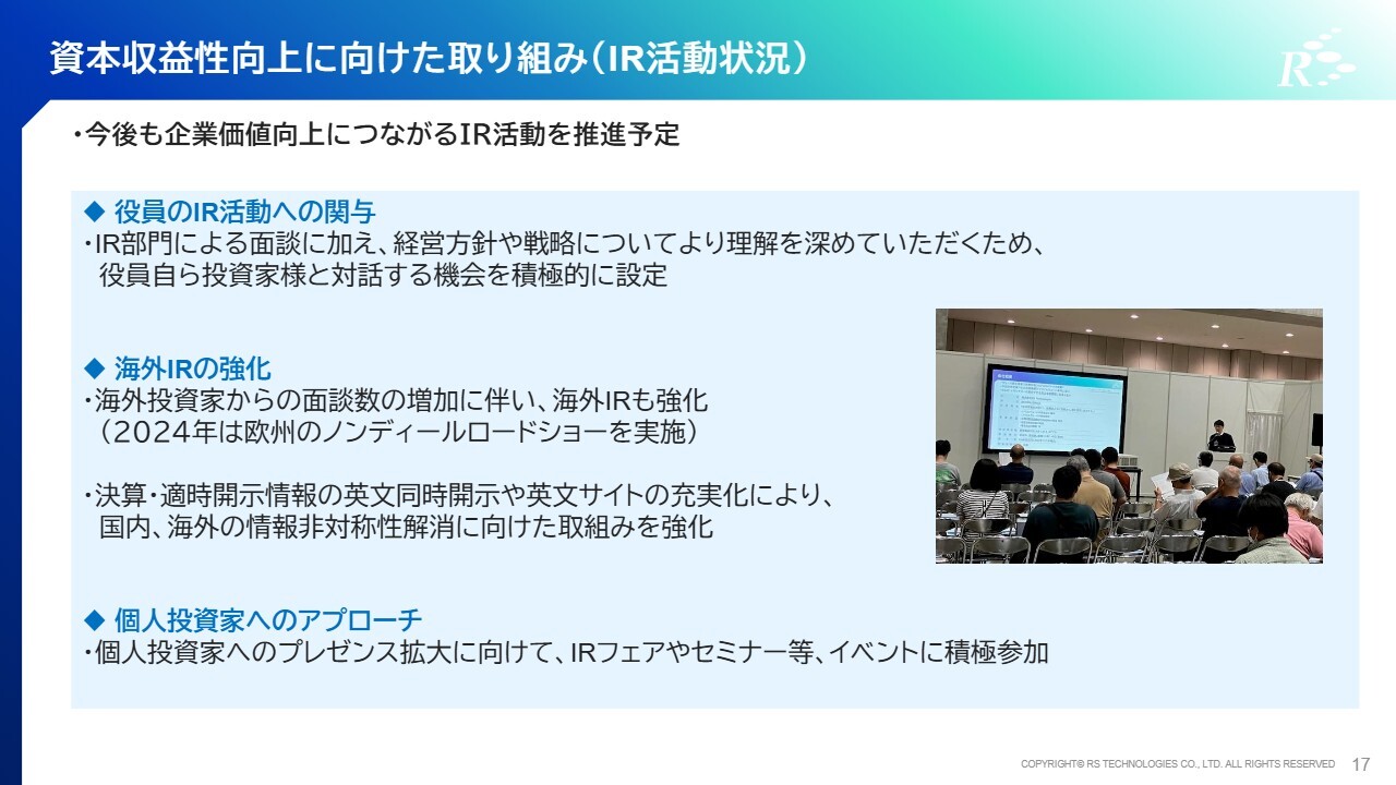さらに、個人投資家向けIRフェアへの参加などを通じ、幅広い投資家層への情報発信とプレゼンス向上に取り組んでいます。