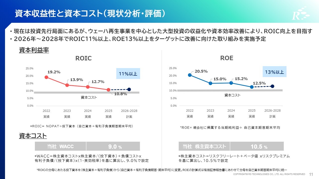 2026年から2028年においては、高収益事業であるウェーハ再生事業に対する大規模な設備投資を実施します。これは顧客のフォーキャストに基づいた判断であり、フルキャパシティでの生産が順次可能と見込んでいるため、ROICの向上につながる投資と考えています。